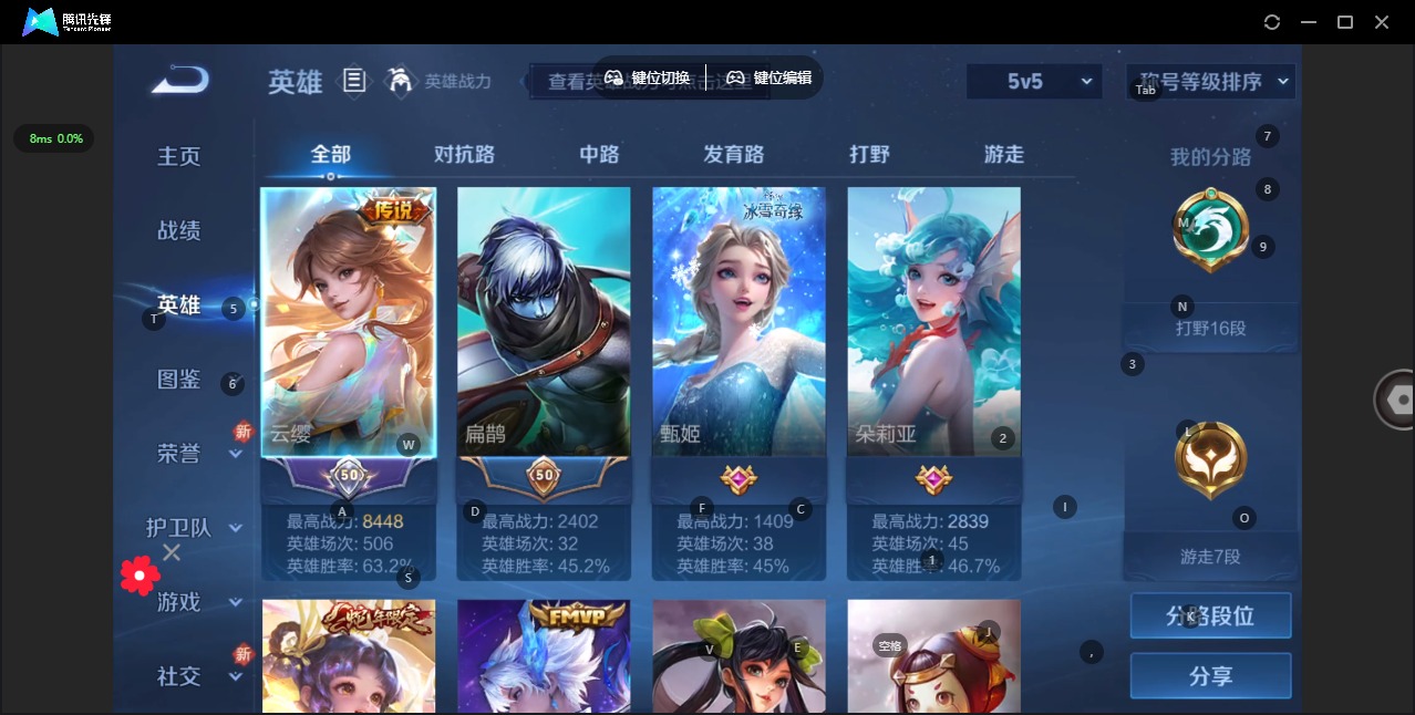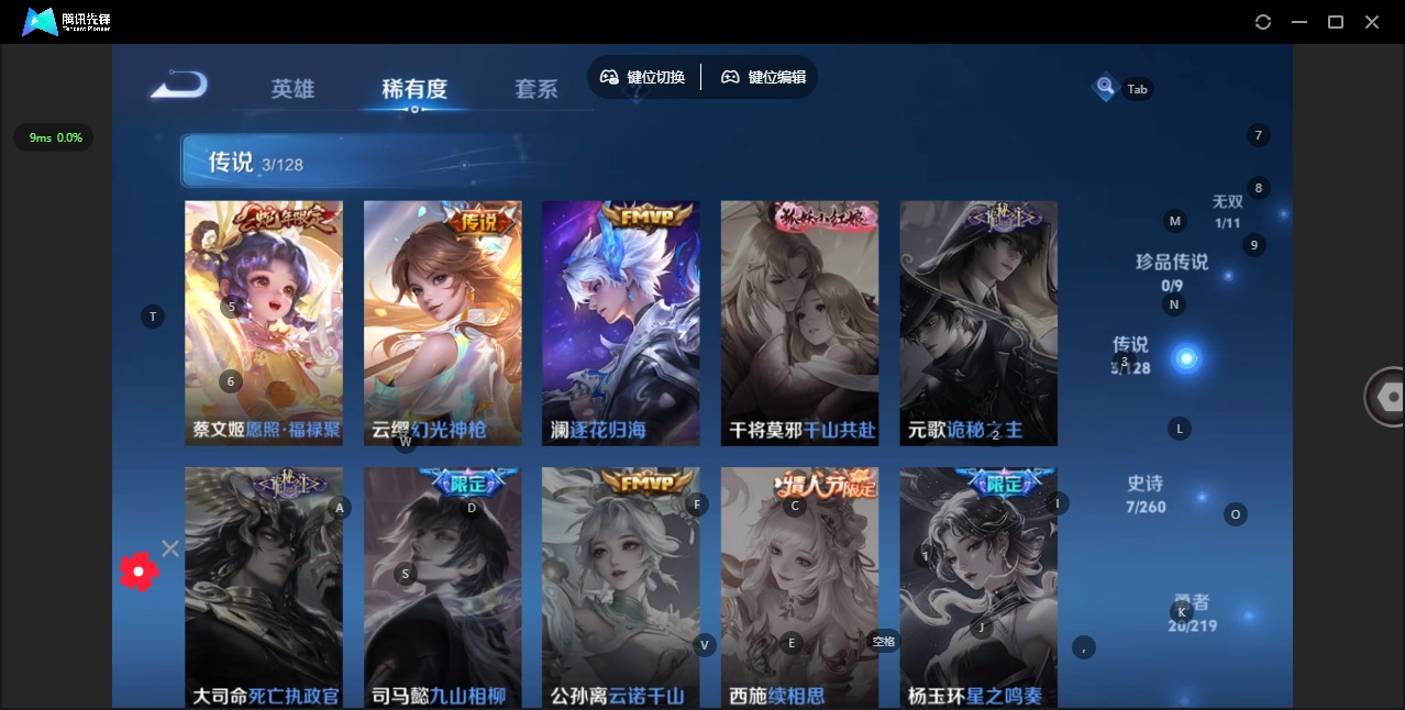 - [11602573]V5 3传说 122英雄 91皮肤 可修改实名 优质装备:淬星耀世,挚爱之约 珍宝阁皮:万物之道 限定皮:怒海麟威,李小龙 史诗皮:江河有灵,乱世虎臣,摇滚巨星,水果甜心,心灵骇客,德古拉伯爵,缤纷独角兽,逐浪之夏,金属风暴,鹰眼统帅,未来纪元-赵云