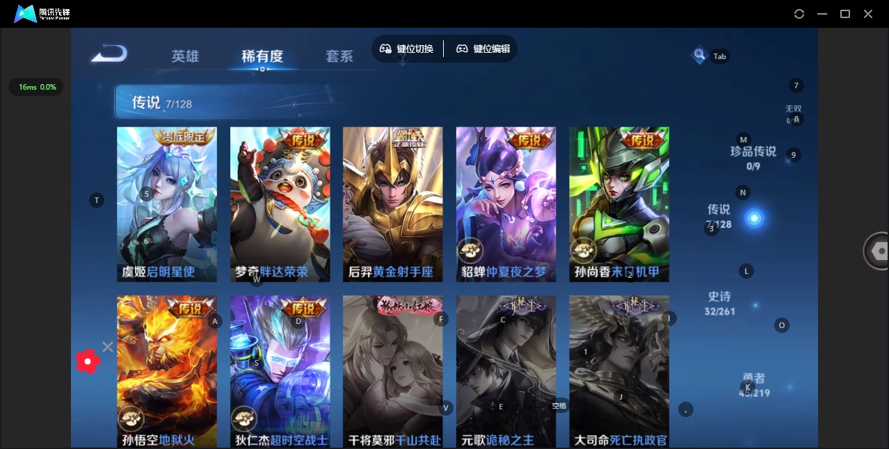 - [12025471]V7 10传说 124英雄 148皮肤 可修改实名 优质装备:冠军飞将,云鹰飞将(小将军),久胜战神,一念神魔,云霓雀翎,地狱火,挚爱之约 传说皮:幻光神枪 珍宝阁皮:优雅恋人 限定皮:凤求凰(白切鸡),武陵仙君(小桃花),傲雪梅枪,冰锋战神,梁祝,李小龙,逐梦之影,孙行者,猪悟能,大圣娶亲 史诗皮:紫霞仙子,白龙吟,千年之狐,晚萤,节奏热浪,修罗,女仆咖啡,水果甜心,星夜王子,暗隐猎兽者,幽灵船长,鬼剑武藏,地狱岩魂,繁星吟游(呼啦呼啦),拒霜思,缤纷独角兽,乘风破浪,逐浪之夏,水晶猎龙者,曙光守护者,原初追逐者,圣诞狂欢,鹰眼统帅,魅力维加斯,赏金猎手,无心