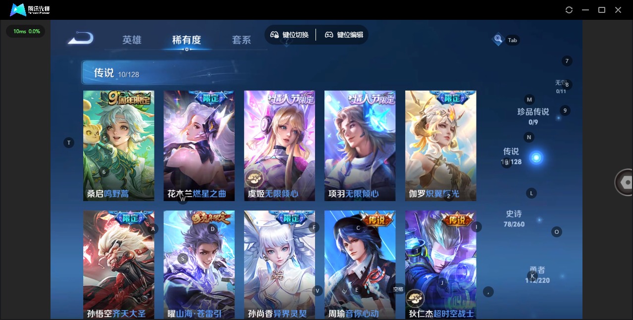 [11765026]V7 10传说 123英雄 217皮肤 可修改实名 优质装备:音你心动-周瑜,超时空战士-狄仁杰,山海·苍雷引(电光曜子),炽翼辉光(娃娃菜牛角包),燃星之曲,涂山容容 珍宝阁皮:万物之道,蔷薇恋人,女武神 限定皮:鸣野蒿,异界灵契(白毛香),傲雪梅枪,无限倾心-项羽,高山流水,无限倾心-虞姬,齐天大圣,五谷丰年,游园惊梦,龙胆,李小龙,乒乒小将,百木心枪,神器·万象笔,山海·玄木吟(马可年限) 史诗皮:星界战将,石田雨龙,百相守梦-黄忠,紫霞仙子,电玩小子(小书包),黄金分割率,特工魅影,千年之狐,江河有灵,魅语,高渐离燃音魔法,偶像歌手,末日机甲-吕布,猫狗日记-孙策,时之恋人-孙尚香,乱世虎臣,节奏热浪,修罗,女仆咖啡,摇滚巨星,水果甜心,绅士熊喵,天才门将,星夜王子,心灵骇客,功夫厨神,德古拉伯爵,暗隐猎兽者,幽灵船长,鬼剑武藏,心灵战警,乐园奇幻夜,舞动绿茵,地狱岩魂,拒霜思,缤纷独角兽,乘风破浪,逐浪之夏,月团寄思,水晶猎龙者,曙光守护者,箭羽风息,金属风暴,圣诞狂欢,圣诞恋歌,鹰眼统帅,暗夜贵公子,魅力维加斯,黎明之约,天秀·音浪,无心,玫瑰异探