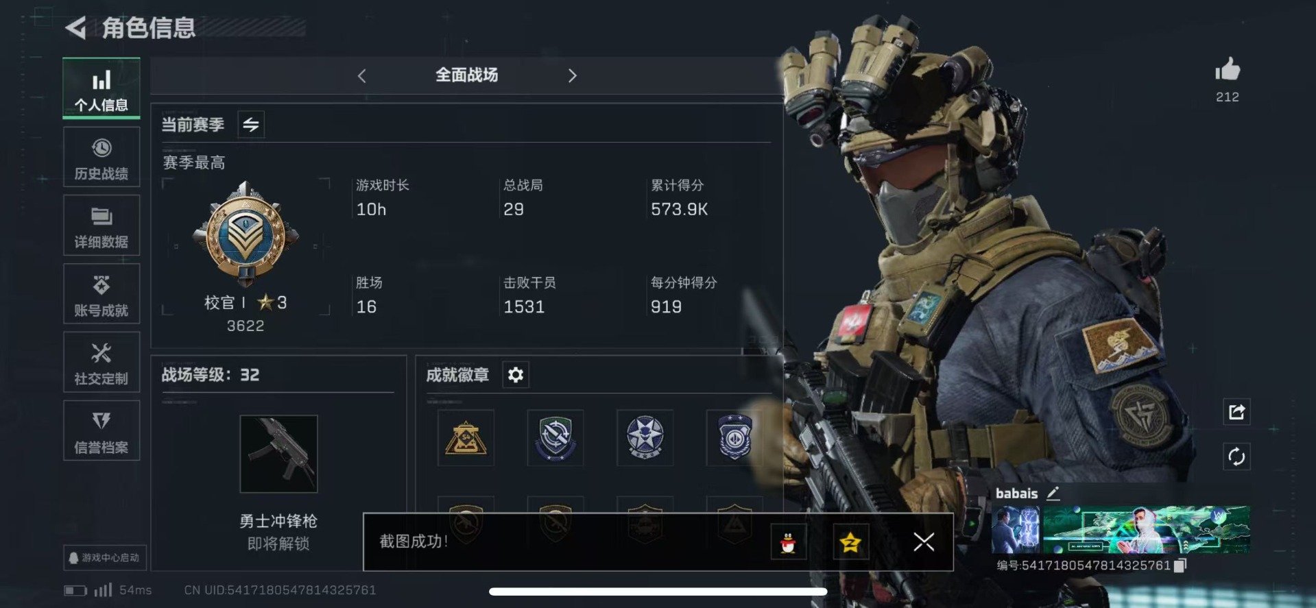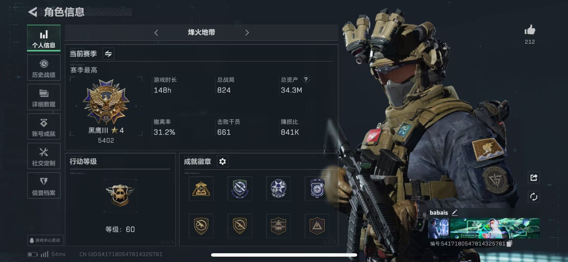 - [11677826]总资产:170.6M 7传说枪械 哈夫币:100K 顶级安全箱(9.17到期) 可二次 可修改实名 优质装备:顶级安全箱(3x3) 烽火地带段位:铂金 全面战场段位:无段位 传说武器皮肤:M4A1突击步枪-阿米娅,CAR-15突击步枪-阿米娅,AWM狙击步枪-捞点薯条,腾龙突击步枪-捞点薯条,93R-捞点薯条,勇士冲锋枪-能天使-午夜邮差,Vector冲锋枪-能天使-午夜邮差 史诗武器皮肤:勇士冲锋枪-深海恐惧,AKM突击步枪-林中猎手,M16A4突击步枪-竞赛选手,M1014霰弹枪-林中猎手,SV-98狙击步枪-林中猎手,PTR-32突击步枪-英雄,SCAR-H战斗步枪-囚徒,Vector冲锋枪-阿萨拉文明