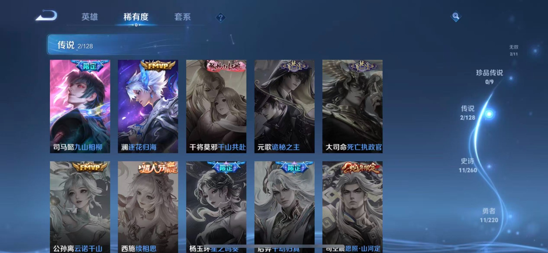 - [11685818]V6 1传说 122英雄 146皮肤 可修改实名 珍宝阁皮:蔷薇恋人 限定皮:逐霄战戟,鸣野蒿,傲雪梅枪,高山流水,游园惊梦,李小龙 史诗皮:百相守梦-百里守约,紫霞仙子,特工魅影,江河有灵,乱世虎臣,修罗,摇滚巨星,绅士熊喵,天才门将,星夜王子,功夫厨神,幽灵船长,鬼剑武藏,舞动绿茵,缤纷独角兽,逐浪之夏,水晶猎龙者,金属风暴,鹰眼统帅,魅力维加斯,无心,未来纪元-赵云