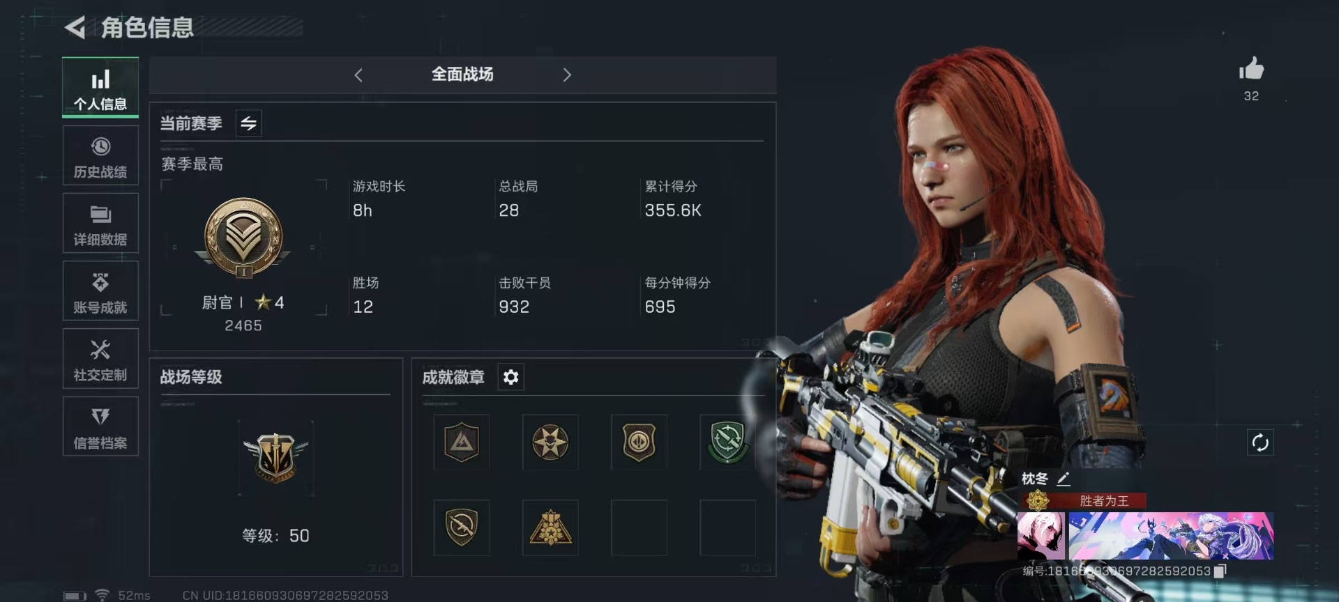 - PX_2092204- 苹果手Q-22王牌印记-3粉装-5特效枪-1载具-67002热力值-163套装-194枪皮-3卓越印记-2传奇印记 【3粉装】,冷漠罗丽,暗星紫秘,俏皮狐尾 【5特效枪】AKM-炫紫旋律-7级 SCAR-L-锦绣绵绵-5级 Kar98K-伏魔团-7级 Mk14-甜梦熊击-5级 烟雾弹-电雾迷城-4级 【5稀有紫装】,奇异狩猎者,雪山精英,龟仙人,暗夜魅影,巡查衣, 【1稀