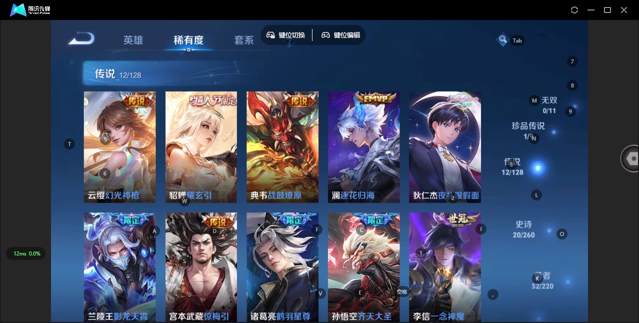 - [12084911]V6 4传说 123英雄 221皮肤 可修改实名 优质装备:地狱之眼 传说皮:典韦战鼓燎原 珍宝阁皮:蔷薇恋人,玩趣恶龙 限定皮:鸣野蒿,至尊宝,白虎志(电光耗子),凤凰于飞,遇见飞天,游园惊梦,梁祝,李小龙 史诗皮:星界战将,龙之律动,破空之剑,百相守梦-百里守约,百相守梦-黄忠,黄金分割率,特工魅影,千年之狐,江河有灵,百解令(蒙犽),高渐离燃音魔法,蒙恬荣光圣徽,冰冠公主,青蛇,偶像歌手,猫狗日记-孙策,乱世虎臣,节奏热浪,摇滚巨星,水果甜心,天才门将,星夜王子,心灵骇客,暗隐猎兽者,幽灵船长,心灵战警,天秀·启明,纤云弄巧,繁星吟游(呼啦呼啦),拒霜思,乘风破浪,逐浪之夏,水晶猎龙者,箭羽风息,金属风暴,圣诞狂欢,鹰眼统帅,天秀·音浪,无心