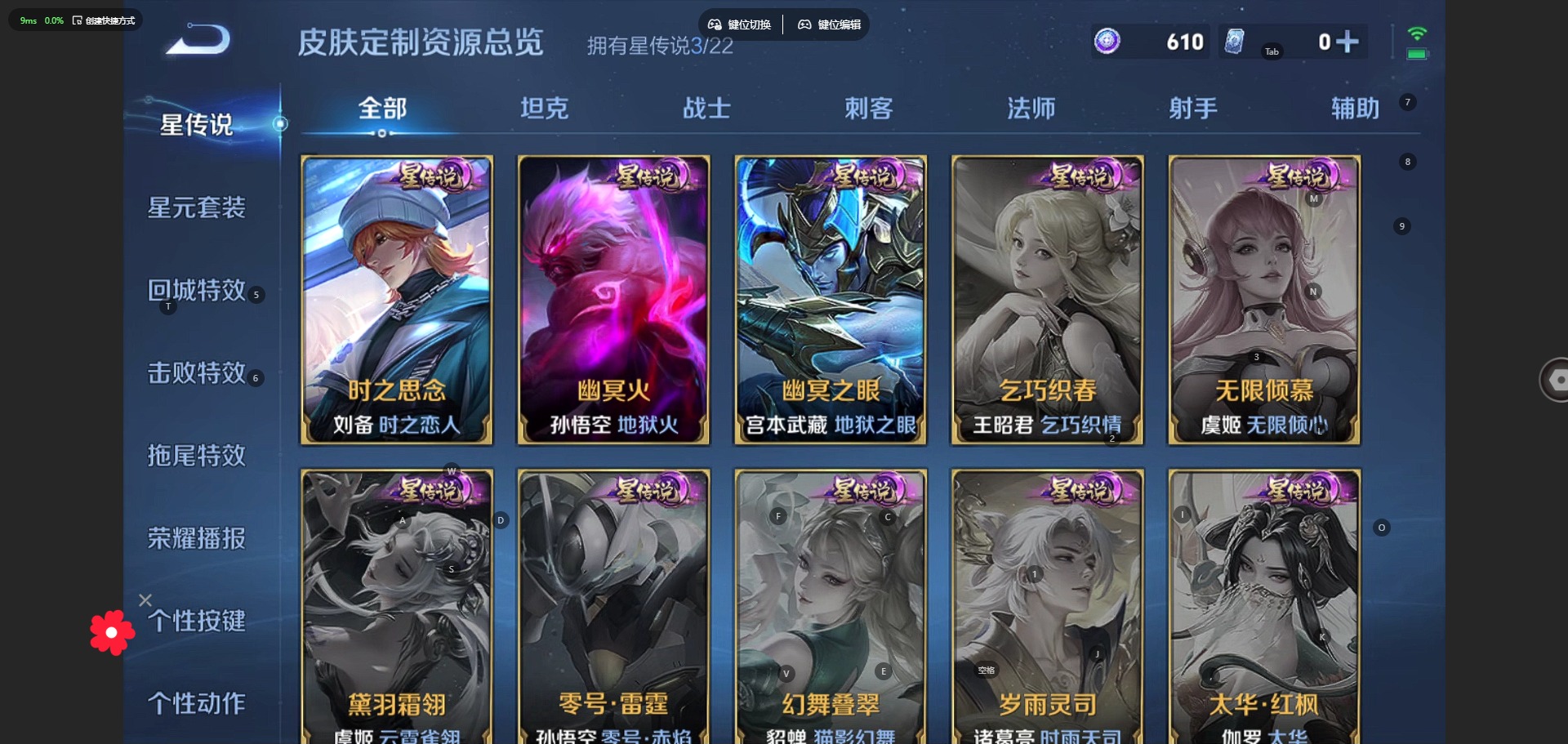 刘备时之恋人,赵云淬星耀世,李信一念神魔,亚连落雪白狼,张良黄金白羊座,曜云鹰飞将,澜逐花归海,云缨幻光神枪