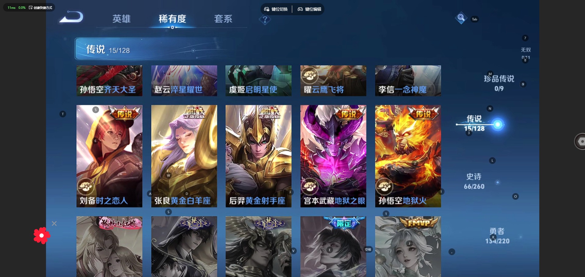 - PX_2096149-31 安卓QQ/非凡王者/240皮肤/123英雄/0典藏/0珍品无双/0无双/0珍品传说/16传说/64史诗/7稀有英雄 【16 传说皮肤】枫霜尽 橘右京,逐花归海 澜,云鹰飞将 曜,诗剑行 李白,猫影幻舞 貂蝉,挚爱之约 孙策,乘龙·淬吴钩 孙策,山海·炽霜斩 李信,一念神魔 李信,淬星耀世 赵云,乘龙·铭钟鼎 赵云,冠军飞将 花木兰,愿照·九州拓 澜,幻光神枪 云缨,祥瑞