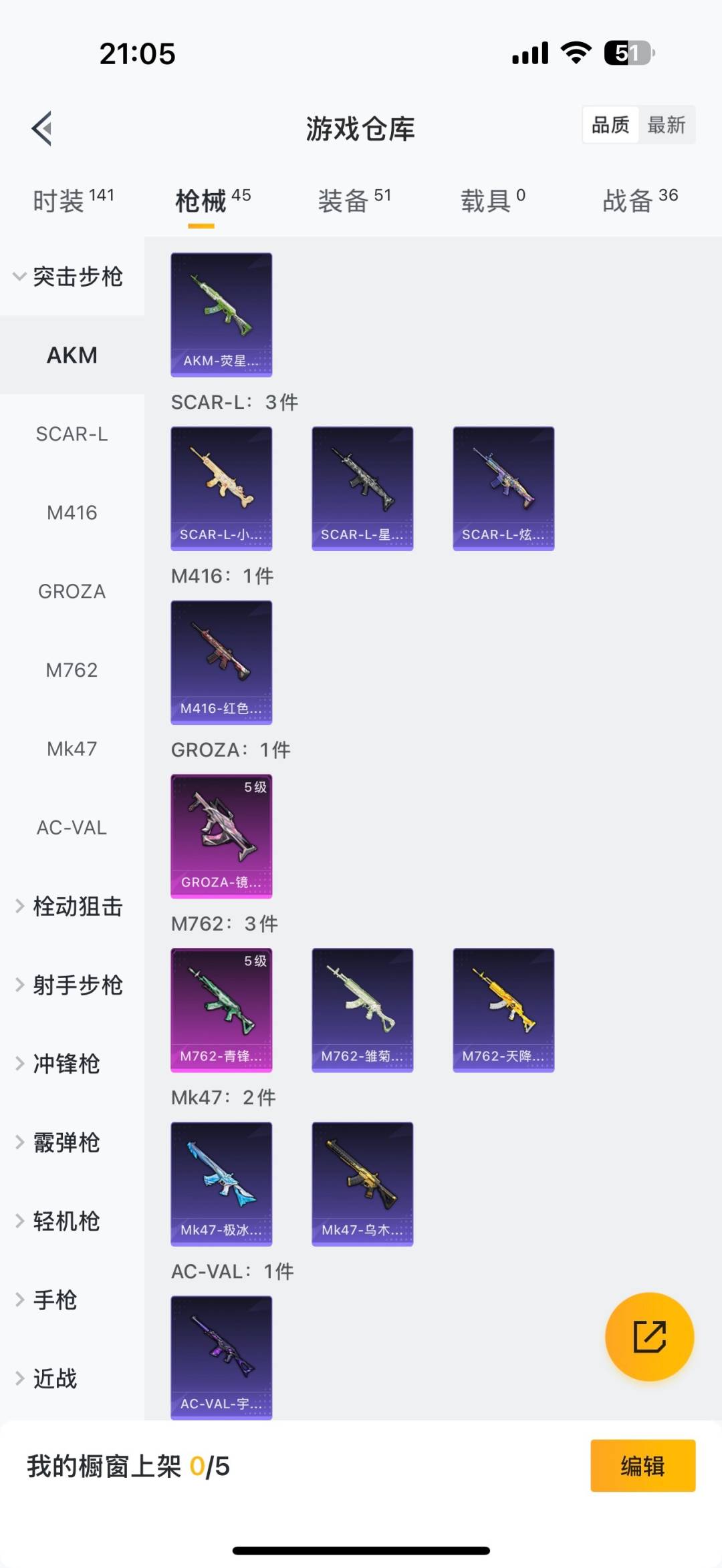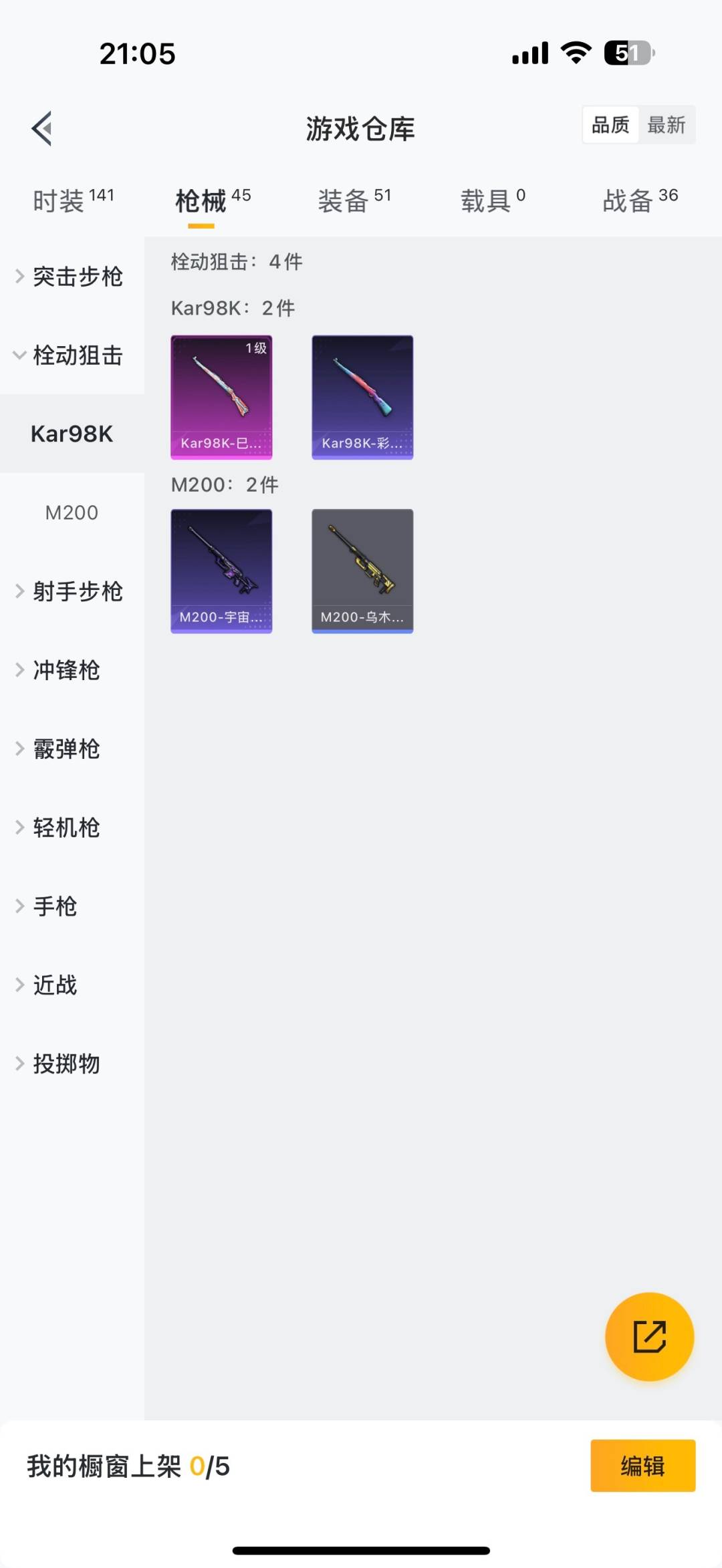 - PX_2094194-实名: 可修改 时装数: 147 载具数: 1 枪械数: 193 战备数: 156 热门装扮: 梦幻火箭(新101),缤纷油彩,恐龙拽拽,碧穹智者,歌者泠鸢,音爆索尼克,小可学妹,白勺歌姬,呆萌星弥,烟云彩露 载具: 兰博基尼Estoque(银翼灰),僚机-萌兔起飞 稀有枪皮: DP-28暗夜鎏金,Kar98K-巳巳如意