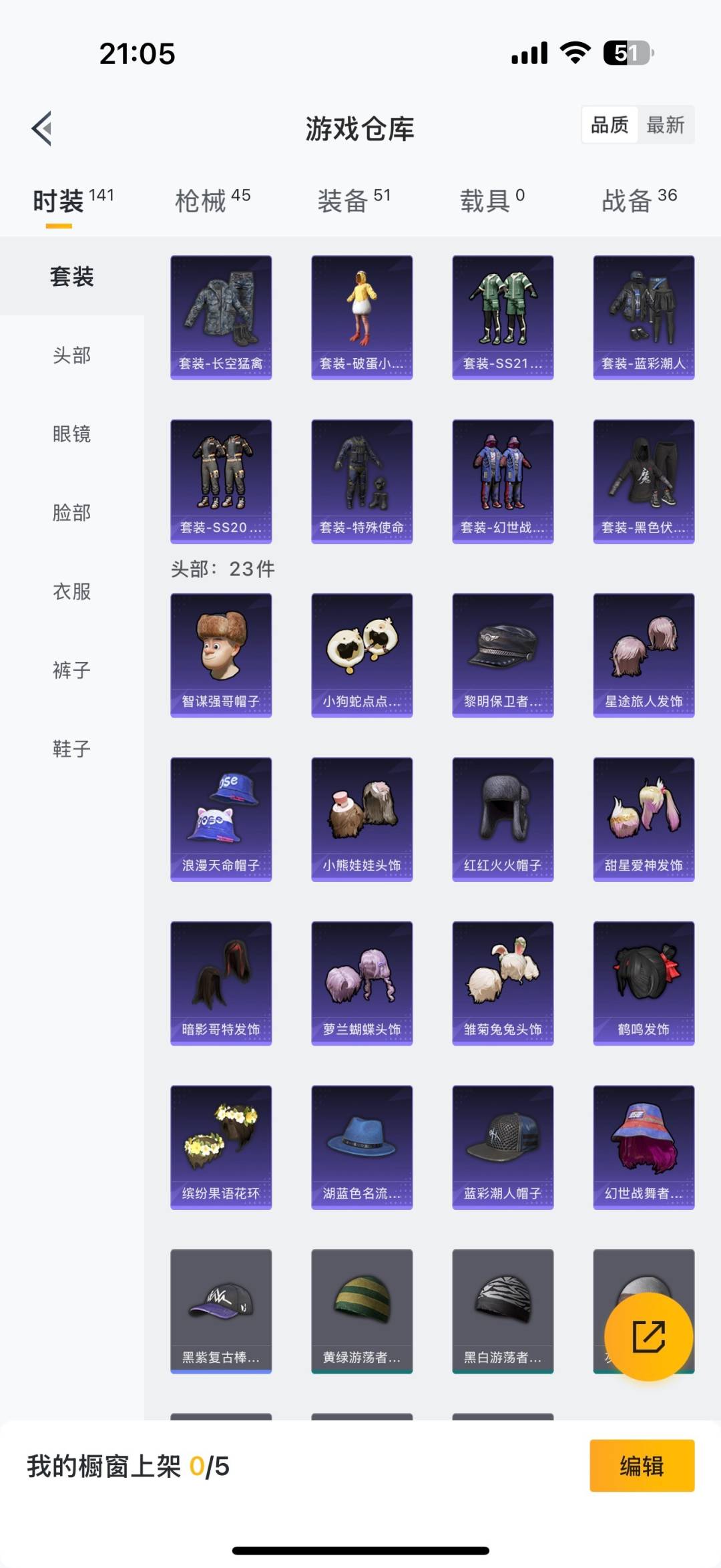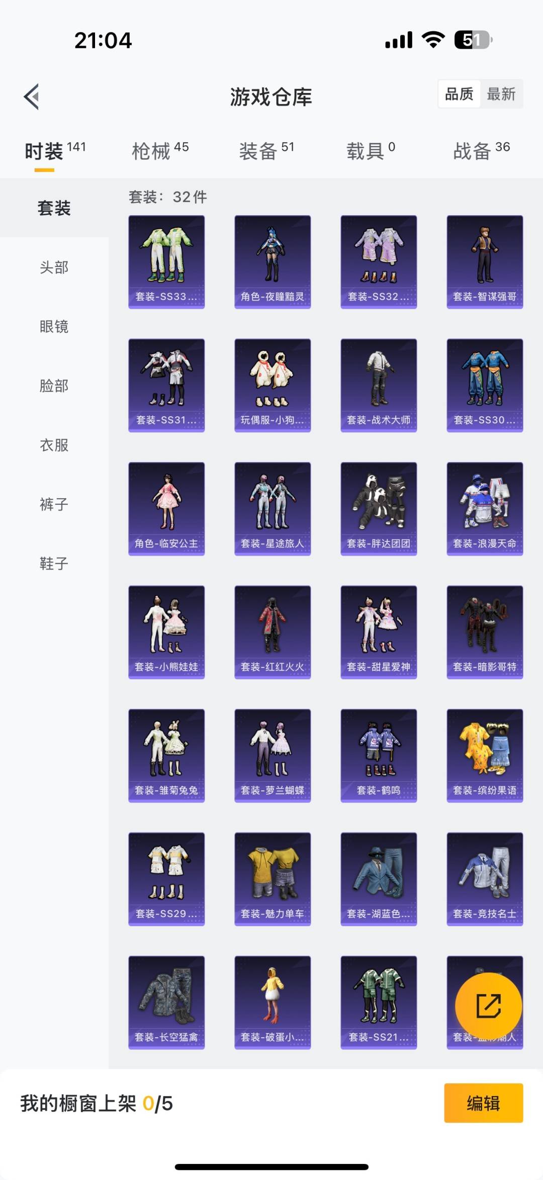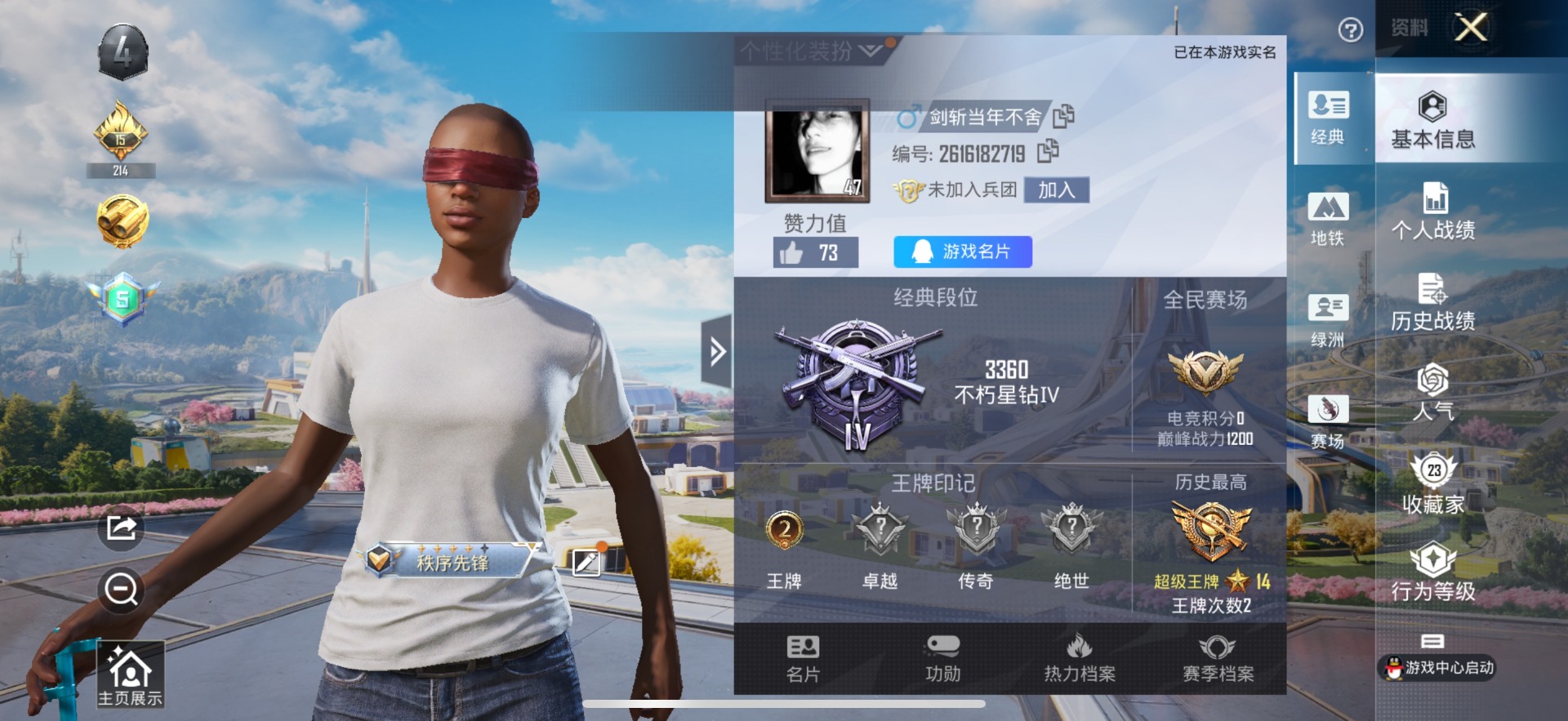 - [10218753]实名: 可修改 时装数: 340 枪械数: 112 战备数: 72 热门装扮: 蝶舞迷情,初号机款机体服,暗夜鎏金,冷漠罗丽 稀有枪皮: Kar98k绿意幻情,Kar98K-巳巳如意,AUG-暖羊咩咩