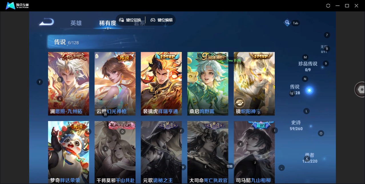 - [11602963]V6 4传说 124英雄 142皮肤 可修改实名 优质装备:炽阳神光,超时空战士-狄仁杰,黄金天蝎座 珍宝阁皮:妄想食味 限定皮:鸣野蒿,梁祝,御风骁将(吕布年限),李小龙,山海·玄木吟(马可年限) 史诗皮:东方月初,蒙犽顽岩魄,海诺心动手记,星界特工,黄金分割率,千年之狐,乱世虎臣,修罗,女仆咖啡,摇滚巨星,水果甜心,心灵骇客,德古拉伯爵,幽灵船长,鬼剑武藏,暗渊魔法,纤云弄巧,繁星吟游(呼啦呼啦),逐浪之夏,龙鼓争鸣,水晶猎龙者,金属风暴,鹰眼统帅,魅力维加斯,赏金猎手,未来纪元-赵云