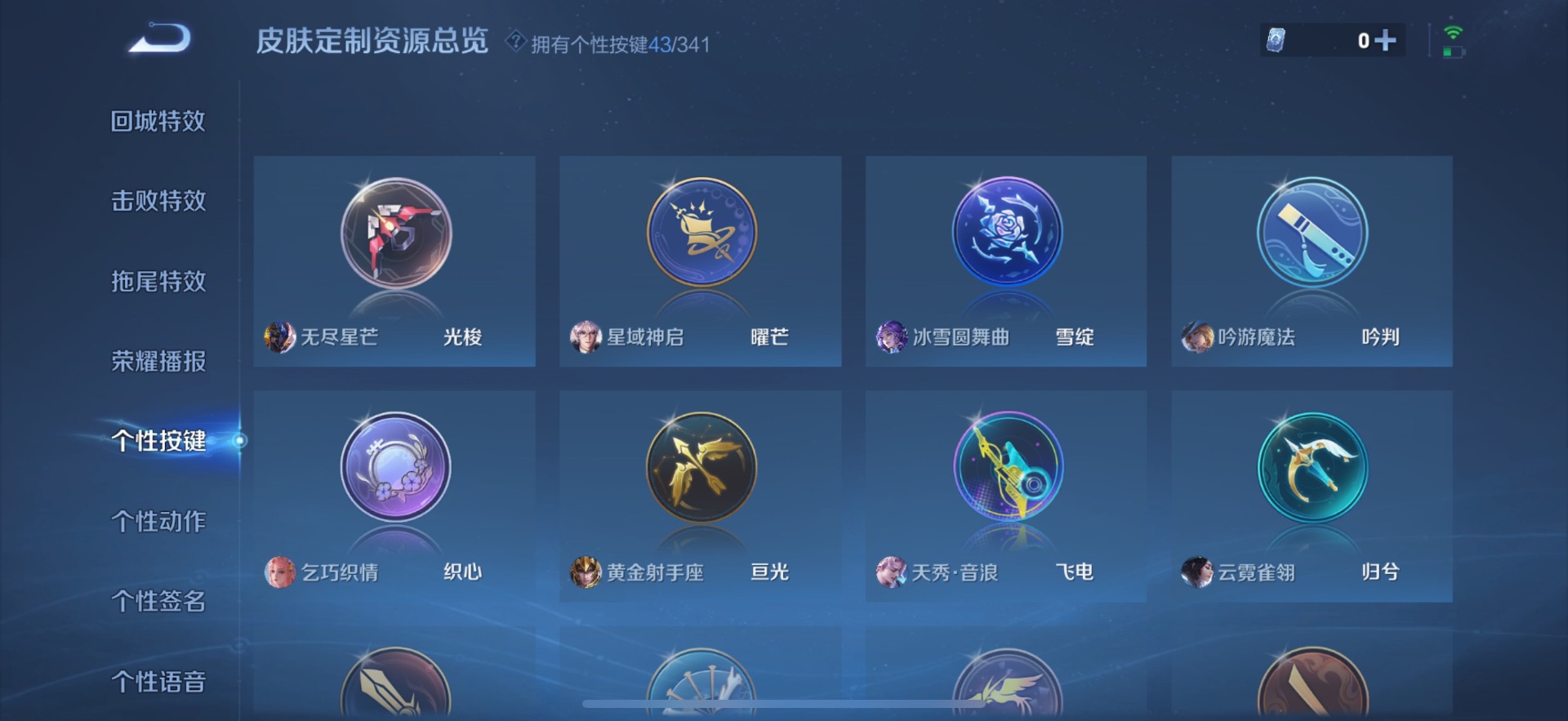 大乔挚爱花嫁,刘备时之恋人,赵云淬星耀世,干将莫邪久胜战神,小乔音你心动,李信一念神魔,孙策末日机甲,孙策挚爱之约,达摩黄金狮子座,王昭君乞巧织情,镜炽阳神光,周瑜音你心动,貂蝉遇见胡旋,貂蝉猫影幻舞,艾琳觅芳踪,西施游龙清影,张良黄金白羊座,曜李逍遥,百里守约碎云,李元芳飞鸢探春,澜逐花归海,蔡文姬花朝如约,虞姬云霓雀翎