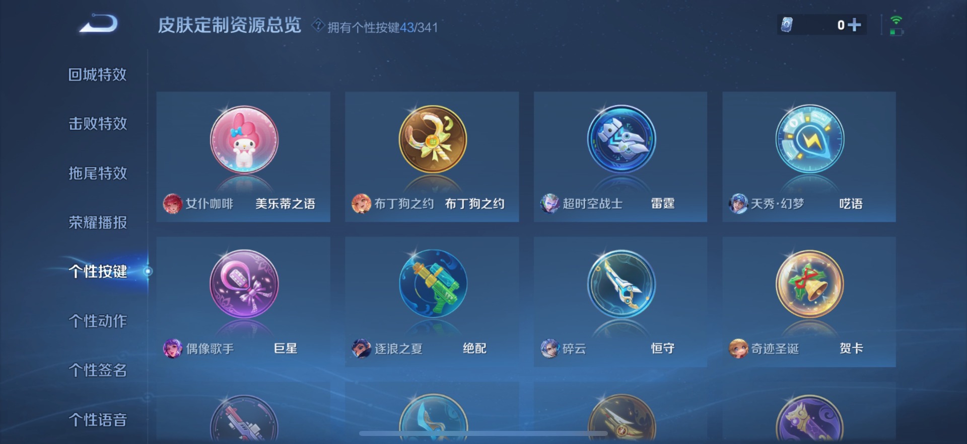 大乔白蛇,大乔猫狗日记,高渐离天秀·音浪,刘邦德古拉伯爵,夏侯惇乘风破浪,阿轲暗夜猫娘,阿轲节奏热浪,哪吒雪上飞焰,铠曙光守护者,曹操幽灵船长,伽罗箭羽风息,廉颇地狱岩魂,小乔缤纷独角兽,小乔青蛇,孙尚香时之恋人,孙策猫狗日记,不知火舞魅语,赵怀真鹤归松栖,鲁班七号电玩小子,项羽苍穹之光,吕布圣诞狂欢,吕布末日机甲,露娜紫霞仙子,庄周天秀·幻梦,诸葛亮黄金分割率,司马懿暗渊魔法,刘禅天才门将,刘禅绅士熊喵,宫本武藏鬼剑武藏,公孙离无限星赏官,兰陵王暗隐猎兽者,貂蝉圣诞恋歌,花木兰水晶猎龙者,夏洛特永昼,李白千年之狐,蒙犽龙鼓争鸣,安琪拉心灵骇客,安琪拉时之奇旅,艾琳奇遇舞章,杨戬天秀·启明,白起星夜王子,亚瑟心灵战警,张良千筹问战,嬴政摇滚巨星,嬴政暗夜贵公子,程咬金功夫厨神,百里玄策热力回旋,百里玄策原初追逐者,雅典娜冰冠公主,雅典娜黎明之约,百里守约特工魅影,李元芳逐浪之夏,墨子龙骑士,墨子金属风暴,蔡文姬舞动绿茵,瑶遇见神鹿,娜可露露晚萤,王昭君偶像歌手,嫦娥拒霜思,钟馗乐园奇幻夜,橘右京修罗