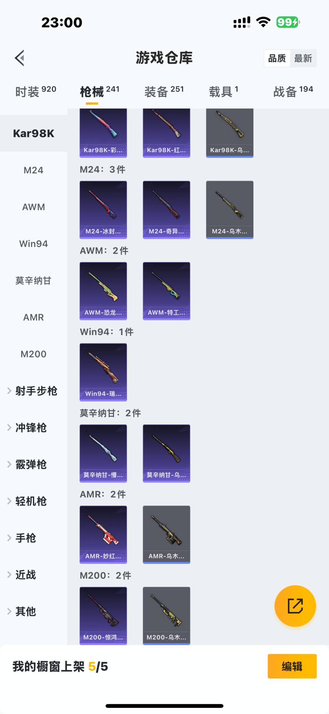AKM-缤纷海域,AKM-奇异狩猎者,M416-仓鼠灰灰,M762-奇异狩猎者,M762-瑞龙福将,M24-奇异狩猎者,S686-奇异狩猎者