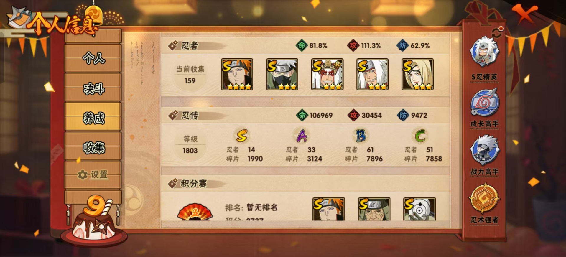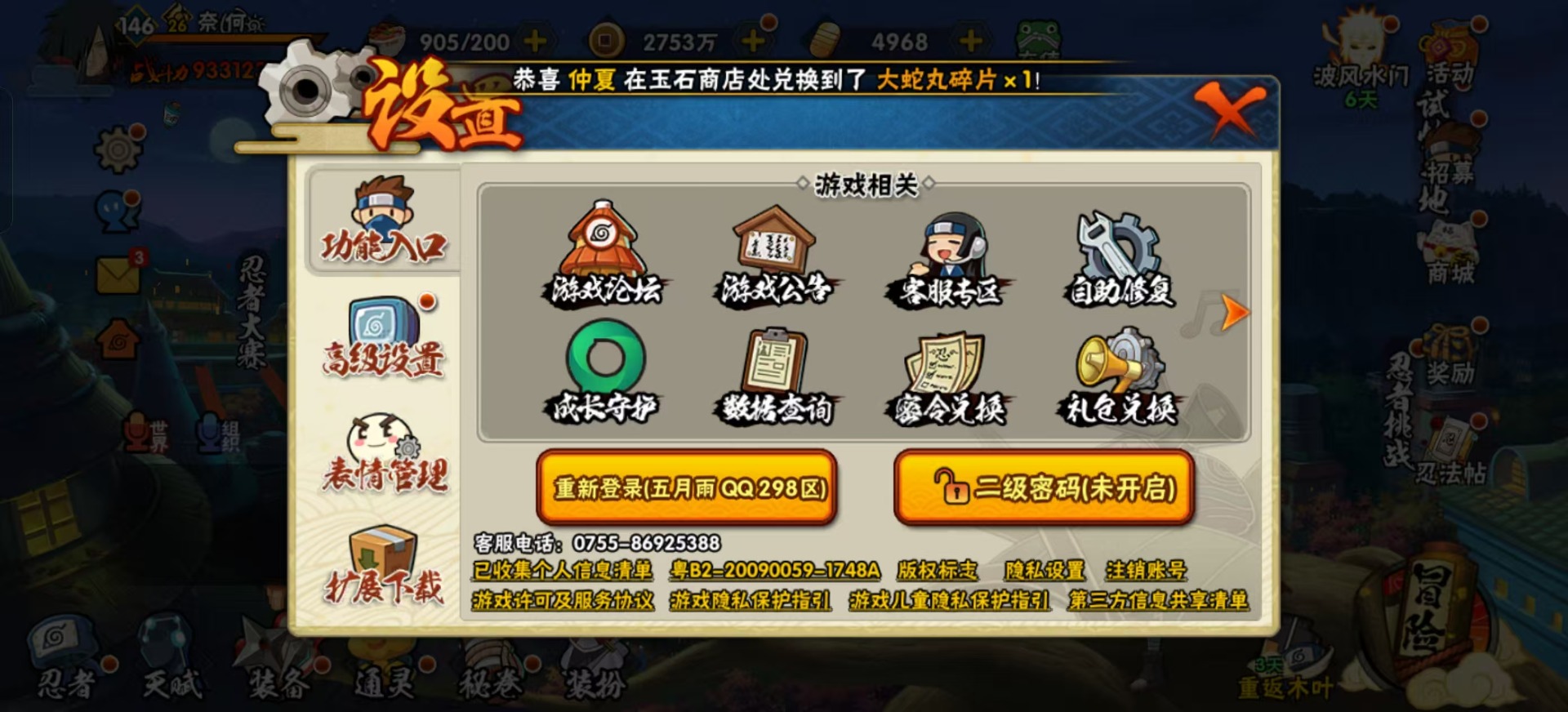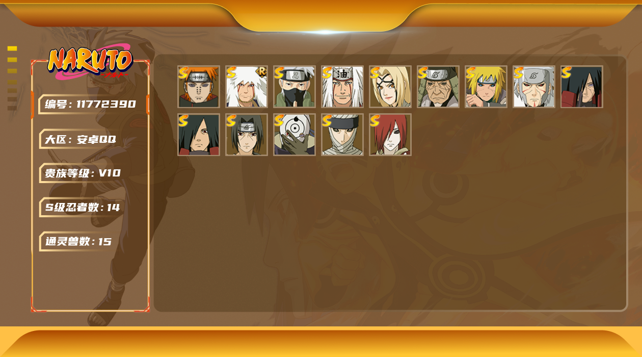 [11772390]V10 14S忍 33A忍 15通灵 933.1W战力 可二次 可修改实名 优质装备:熊猫,宇智波斑「秽土转生」,千手扉间「秽土转生」,纲手「百豪」,无「二代目土影」,波风水门「秽土转生」,猿飞日斩「秽土转生」,长门「秽土转生」,宇智波斑,“宇智波斑” 「白面具」,旗木卡卡西「须佐能乎」 S级忍者:自来也 「舞之豪杰」,宇智波鼬 「须佐能乎」,佩恩「天道」,自来也