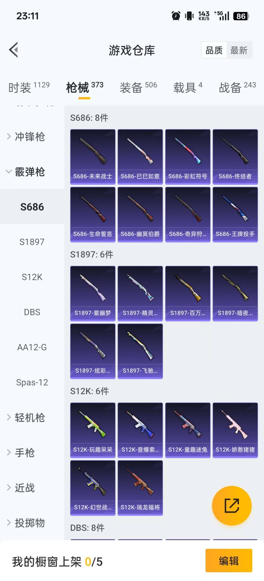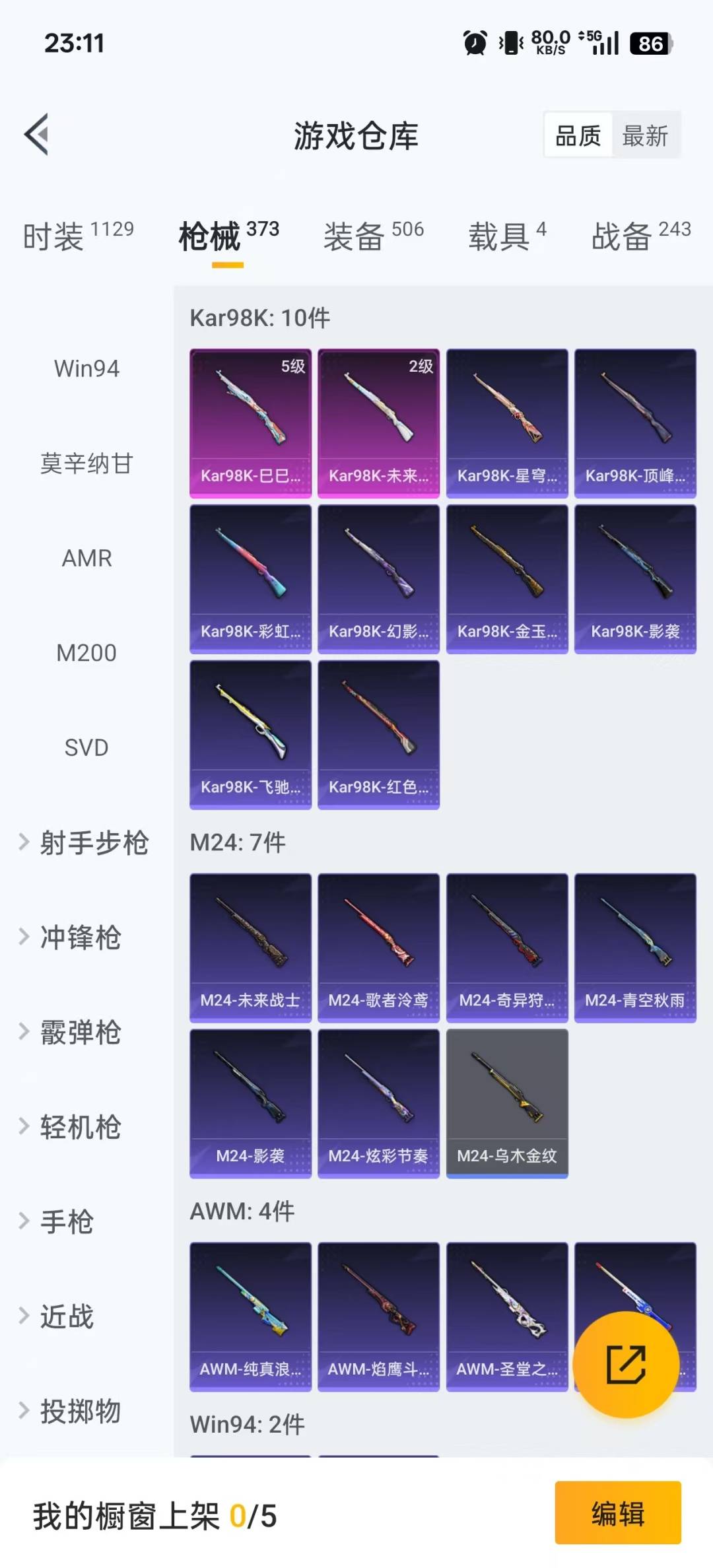AKM-奇异狩猎者,M416-星际漫游,M416-快乐主宰,M762-奇异狩猎者,M762-瑞龙福将,M24-奇异狩猎者,S686-奇异狩猎者