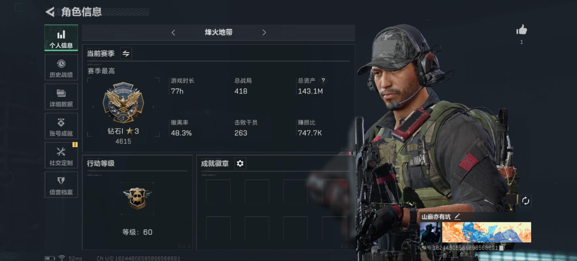 - [11498288]总资产:382.2M 11传说枪械 哈夫币:193K 可二次 可修改实名 优质装备:顶级安全箱(3x3) 烽火地带段位:黑鹰 全面战场段位:无段位 传说武器皮肤:SMG45冲锋枪-骑士,M16A4突击步枪-狩猎时刻,M4A1突击步枪-阿米娅,CAR-15突击步枪-阿米娅,复合弓-黑-天际线,Vector冲锋枪-狩猎时刻,G3战斗步枪-狩猎时刻,AWM狙击步枪-捞点薯条,腾龙突击步枪-捞点薯条,93R-捞点薯条,勇士冲锋枪-能天使-午夜邮差 史诗武器皮肤:SVD狙击步枪-暗夜猎手,M16A4突击步枪-竞赛选手,MP5冲锋枪-深海恐惧,AKM突击步枪-林中猎手,SV-98狙击步枪-林中猎手,PTR-32突击步枪-英雄,M250通用机枪-囚徒,沙漠之鹰-曙光,M700狙击步枪-竞技风