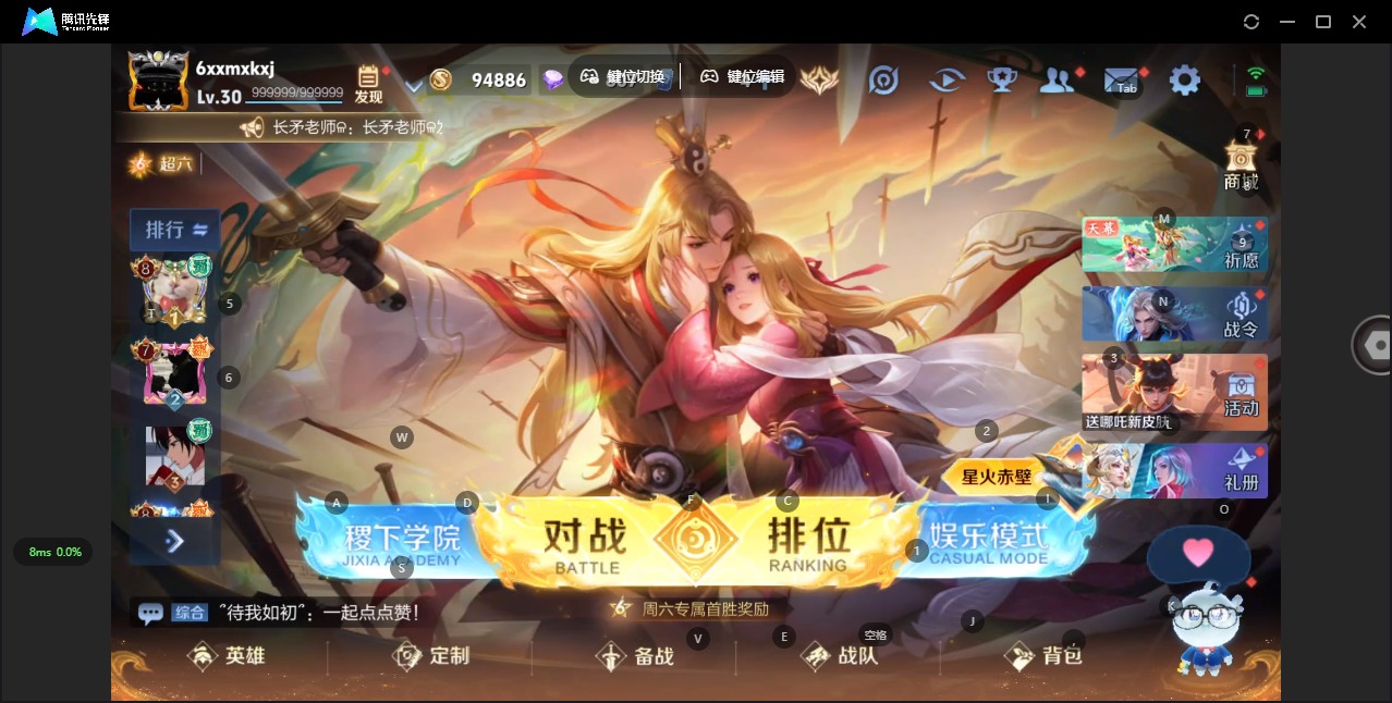 - [11253514]V8 25传说 122英雄 273皮肤 可修改实名 传说皮:黄金射手座,一念神魔,淬星耀世,久胜战神,猫影幻舞,云鹰飞将(小将军),炽阳神光,无双飞将,音你心动-周瑜,超时空战士-狄仁杰,末日机甲-孙策,碎云,神器·狴犴令,画中仙,浮生妄 珍宝阁皮:蔷薇恋人,玩趣恶龙 限定皮:至尊宝,异界灵契(白毛香),傲雪梅枪,寅虎·展翼(孙膑年限),前尘镜,星穹之声,绯月行,时雨天司(水龙头),遇见飞天,高山流水,诗剑行,齐天大圣,怒海麟威,五谷丰年,青龙志(铠年限),梁祝,天狼狩猎者,天狼绘梦者,李小龙,朱雀志(守约年限),霸王别姬-虞姬,孙行者,大圣娶亲,寅虎·御盾(廉颇年限),寅虎·心曲(虎婆),寅虎·赤拳(老虎年限) 史诗皮:遇见神鹿,黄金分割率,特工魅影,末日机甲-吕布,猫狗日记-大乔,时之恋人-孙尚香,乱世虎臣,节奏热浪,修罗,女仆咖啡,水果甜心,绅士熊喵,天才门将,星夜王子,心灵骇客,功夫厨神,德古拉伯爵,暗隐猎兽者,幽灵船长,鬼剑武藏,地狱岩魂,纤云弄巧,缤纷独角兽,乘风破浪,逐浪之夏,水晶猎龙者,热力回旋,箭羽风息,金属风暴,圣诞狂欢,圣诞恋歌,鹰眼统帅,赏金猎手,寅虎·御盾,千筹问战,无心,未来纪元-赵云
