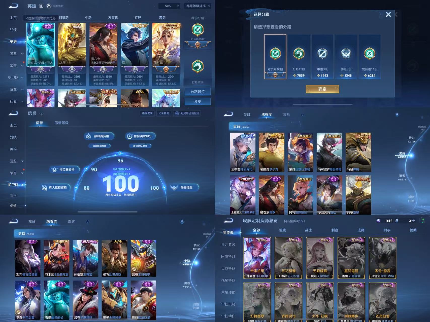 - [12001724]V6 2传说 117英雄 134皮肤 可修改实名 优质装备:黄金狮子座 限定皮:至尊宝,凤求凰(白切鸡),龙胆,李小龙,大圣娶亲 史诗皮:黄金分割率,冰冠公主,摇滚巨星,水果甜心,德古拉伯爵,鬼剑武藏,纤云弄巧,繁星吟游(呼啦呼啦),缤纷独角兽,乘风破浪,逐浪之夏,圣诞恋歌,鹰眼统帅,魅力维加斯