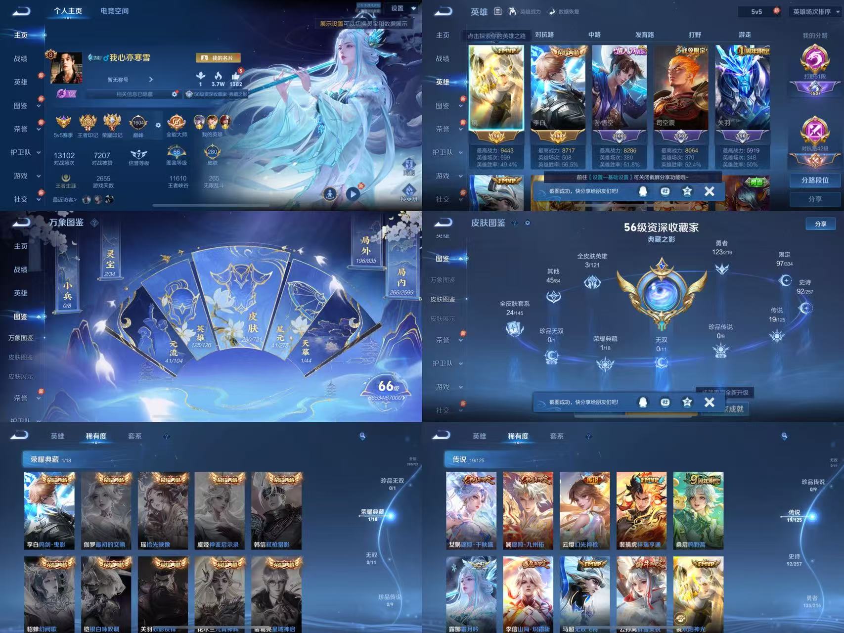 - PX_2023139-贵族等级: V5 英雄数: 53 皮肤数: 28 传说皮: 久胜战神,挚爱之约