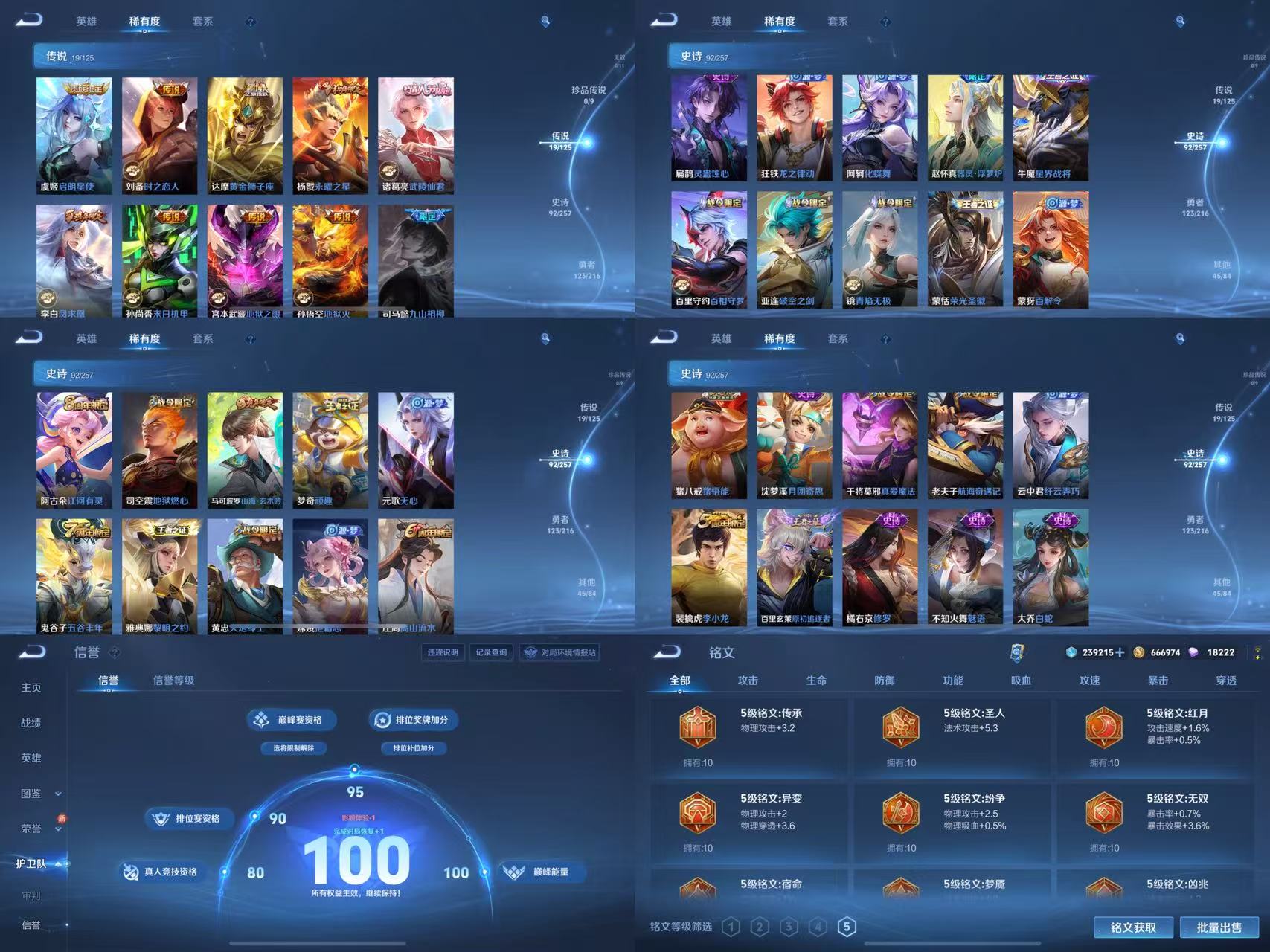 - [11608172]V7 1典藏 1珍品传说 7传说 125英雄 190皮肤 可修改实名 优质装备:全息碎影(猴子典藏),黄金狮子座,冠军飞将,久胜战神,超时空战士-狄仁杰 珍品传说:时之奇旅-孙策 传说皮:幻光神枪 珍宝阁皮:妄想食味 限定皮:愿照·山河定(司空震年限),鸣野蒿,梁祝,御风骁将(吕布年限),李小龙,山海·玄木吟(马可年限) 史诗皮:器灵·浮梦炉,化蝶舞,星界战将,谪仙醉月,龙之律动,藏狐·褐绒,茶境仙,破空之剑,紫霞仙子,特工魅影,雪夜绮愿(周瑜),魅语,百解令(蒙犽),高渐离燃音魔法,蒙恬荣光圣徽,无限星赏官,冰冠公主,偶像歌手,龙骑士(小龙虾),末日机甲-吕布,乱世虎臣,节奏热浪,修罗,水果甜心,德古拉伯爵,暗隐猎兽者,幽灵船长,鬼剑武藏,地狱岩魂,纤云弄巧,缤纷独角兽,水晶猎龙者,圣诞狂欢,鹰眼统帅,魅力维加斯