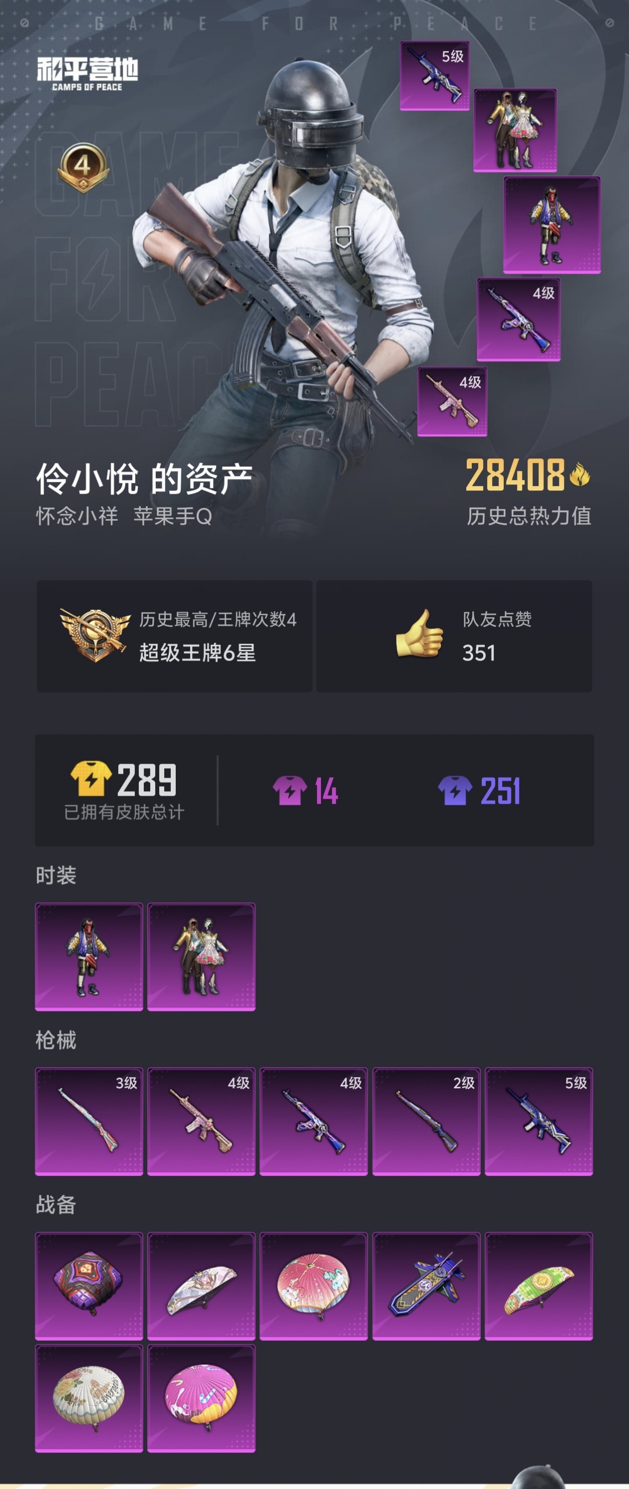 [10606583]WBDS0021 苹果Q 2粉装5特效枪 54套装 86枪皮 蝶舞迷情 天禅智恒 M416-心之恋语 (4级) Kar98K-巳巳如意 (3级) Kar98K-伏魔团 (2级) AKM-星际浪客 (4级) SCAR-L-青春物语 (5级) 伏魔团飞行器 Mark.06 大橘为重