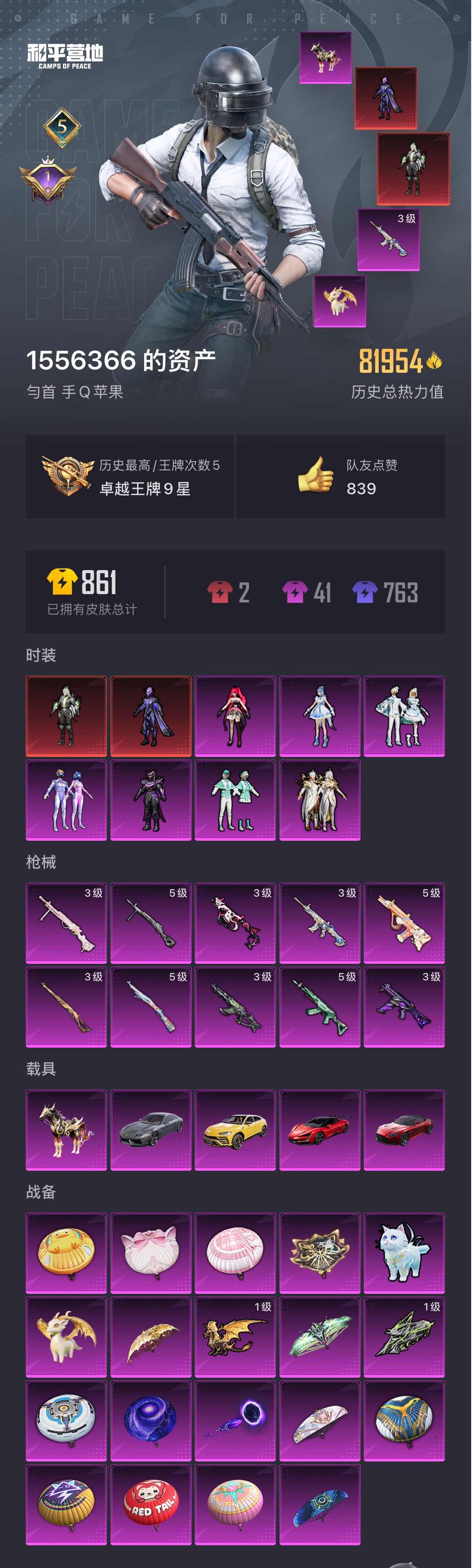 - PX_2088293- 包人脸 苹果手Q-5王牌印记-2粉装-6特效枪-0载具-27021热力值-50套装-88枪皮-2卓越印记-0传奇印记, 【2粉装】,御兔特攻,幻影飞狐, 【6特效枪】,AKM-绿萝繁花-5级,SCAR-L-锦绣绵绵-5级,M416-电玩时刻-5级,GROZA-镜光银凌-5级,AUG-暖羊咩咩-5级,Kar98K-巳巳如意-5级,, 【1稀有紫装】,龟仙人, 【50稀有时装】