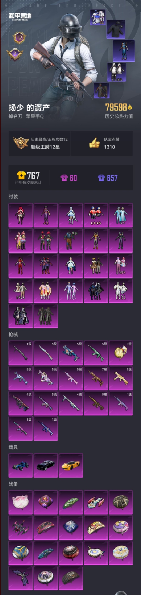 - PX_2100608-??/枪械8/装备302/战备166/王牌印记9/热力值72340/七级AKM-梦之光华/五级GROZA-镜光银凌/五级AUG-暖羊咩咩/五级Kar98K-巳巳如意/六级Mk14-樱桃泡泡/五级AMR-智耀战神/五级M417-第五大道/六级平底锅-仲夏莫吉托/梦幻火箭/放客神游/第五大道/莲影清波/角色-小蓝/角色-美雪/套装-创世·救赎/角色-千金淑猫/粉装-幻影飞狐/角色