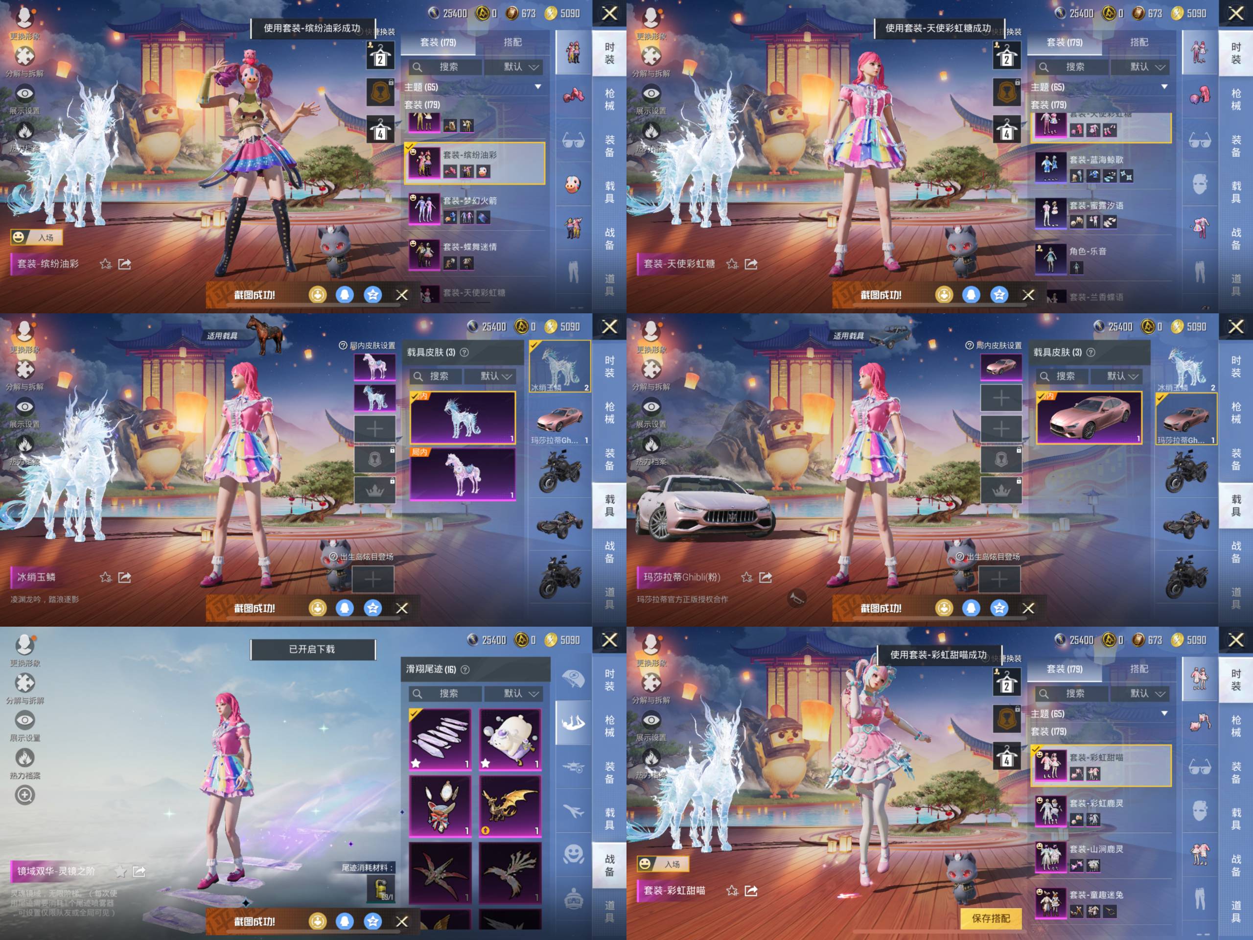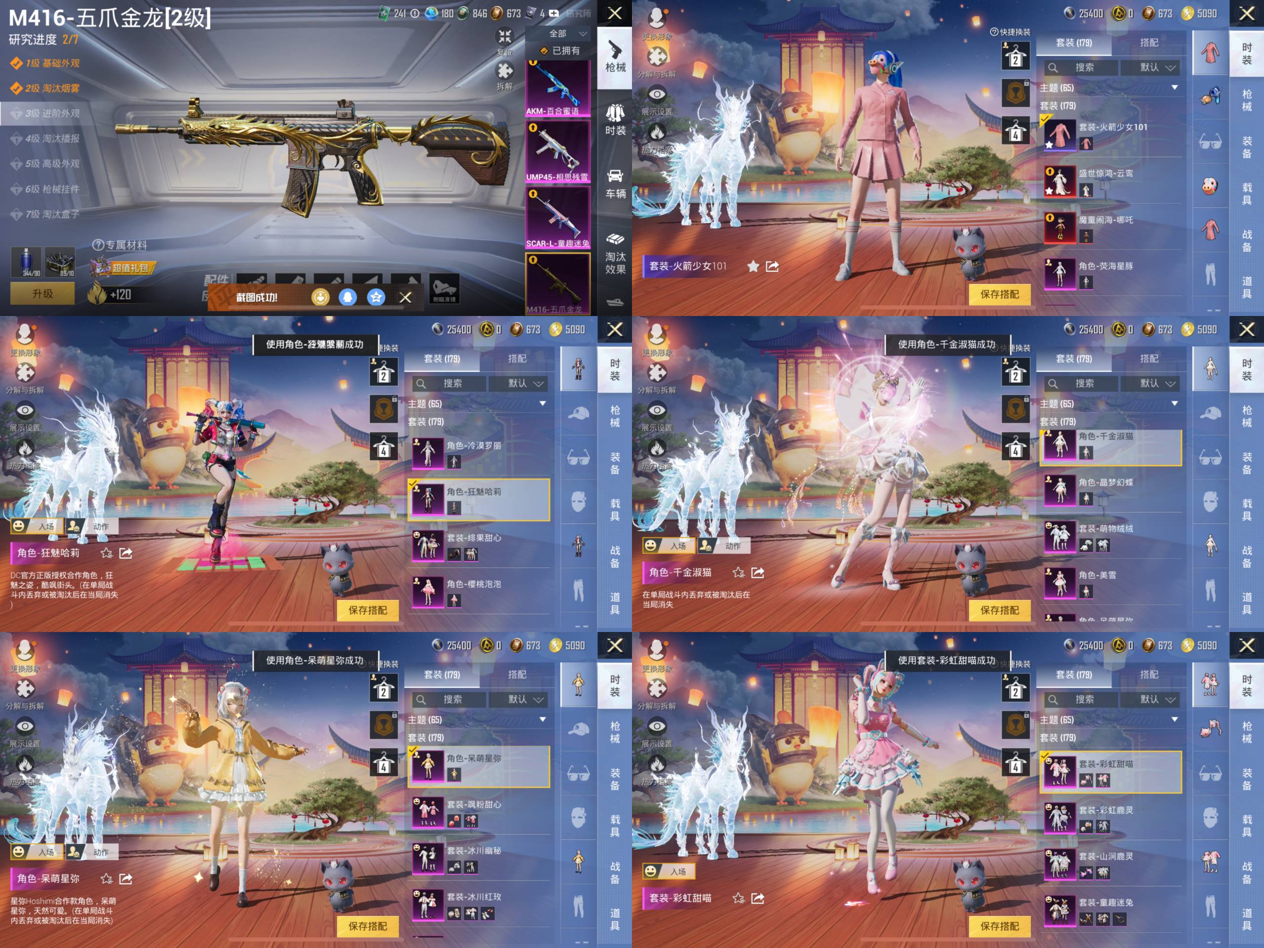 M416-五爪金龙,SCAR-L-童趣迷兔,UMP45-相思残雪,P90-粉樱探戈,M416-超新星,P90-沙丘之主,Kar98K-巳巳如意,烟雾弹-丁香清露,AUG-暖羊咩咩,Mk14-樱桃泡泡,Kar98K-圣域龙灵