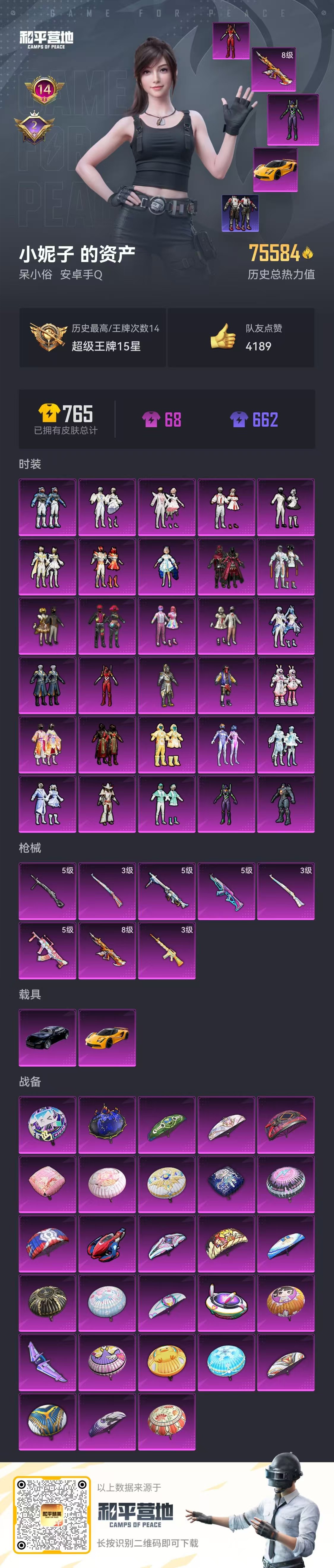 - PX_2100598-??/枪械3/装备129/载具3/战备87/王牌印记2/热力值49091/四级AKM-甜心宝贝/四级M416-五爪金龙/一级Kar98K-巳巳如意/兰博轿车灰色/兰博SUV黄色/合金龙骨蓝色/宝贝奶油派/天使彩虹糖/火曜朱雀/青葱仙萝/碧影闪光/第五大道/套装-龟仙人/AKM-甜心宝贝/M416-五爪金龙/Kar98K-巳巳如意/AKM-夜灯/AKM-彩虹符号/AKM-环太平