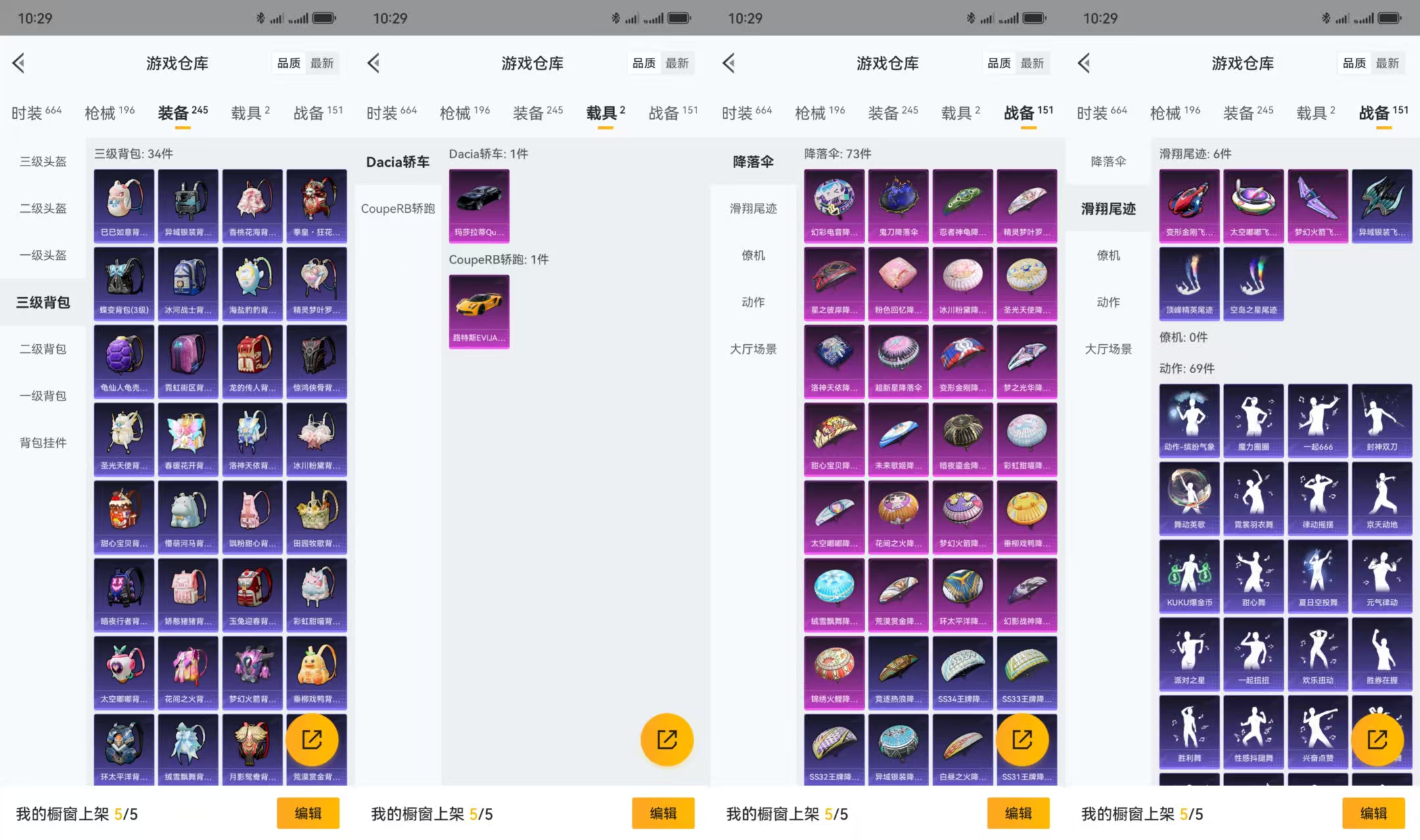 - [11274106]3粉装 9特效枪 1载具 8印记 可二次 可修改实名 身法装备:舞王派对(派对舞王、小金鞋),Mark.06(新蓝螳螂) 优质装备:玛莎拉蒂Quattroporte(夜幕蓝),舞王派对(派对舞王、小金鞋),AKM炫紫旋律,M416心之恋语,SPAS-12音爆索尼克,SCAR-L-锦绣绵绵,七级SPAS-12-音爆索尼克,AUG-暖羊咩咩,樱桃泡泡,MK14-樱桃泡泡,绯穹魔姬,Vector-绯穹魔姬,Kar98K-巳巳如意 热门装扮:创世·救赎,派对舞王(小金鞋) 稀有枪皮:DP-28-豹影疾电 五级特效枪:五级M416-心之恋语,五级Kar98K-巳巳如意,五级AUG-暖羊咩咩,五级MK14-樱桃泡泡,五级SCAR-L-锦绣绵绵 四级特效枪:四级AKM-炫紫旋律,四级Vector-绯穹魔姬,四级DP-28-豹影疾电 紫色装扮:SS22特训,SS23特训,幻彩翩翩,妙红点点,SS31特训套装,冷焰舞者,SS30特训套装,云朵鹅,雪绒豹,SS33特训套装,酒红色名流,长空猛禽,霓虹街区,缤纷果语,荣耀,绛羽幽主,飞行日记,魅力单车,鹤鸣,龟仙人,冰河战士,龙魂突击队,蝶变,香桃花海,柠萌假日,沙漠兵团,海岛探路者,涂山之恋,绮丽涂鸦,破蛋小黄鸡,甜蜜告白,空岛之星,王牌教练,灰色格斗者,猛禽,雏菊兔兔,萝兰蝴蝶,SS29特训,纯真浪花,热情海星,SS28特训,Mark.06(新蓝螳螂),鱼渊荷华,燕燕于飞,巳巳如意,青团波波,糖糖葫芦,棉花软糖,竞技名士,摩登魅猫,街头风暴,许七安,神气柴柴,懵萌河马,SS24特训(SS24特训套装),SS25特训,粉红小猪,焰鹰斗篷,幻羽潜行,幽夜迷踪,SS27特训,无暇誓言,蝶吟花词,SS26特训,春光漫游,快闪甜心,智谋强哥,大橘大利,星渊小夜曲,粉恋花,蓝冰羽,紫幽梦,SS32特训服(SS32特训套装),猎影月神,瑰梦爱神,恋语绒绒,双彩圣灵,漫步者,冰冻风暴,光之冒险 优质战备:圣堂之誓降落伞,星之彼岸降落伞,镜域双华降落伞,猪猪侠降落伞,绯穹魔姬降落伞,赛博古神降落伞,智耀战神降落伞,音爆索尼克降落伞,第五大道降落伞