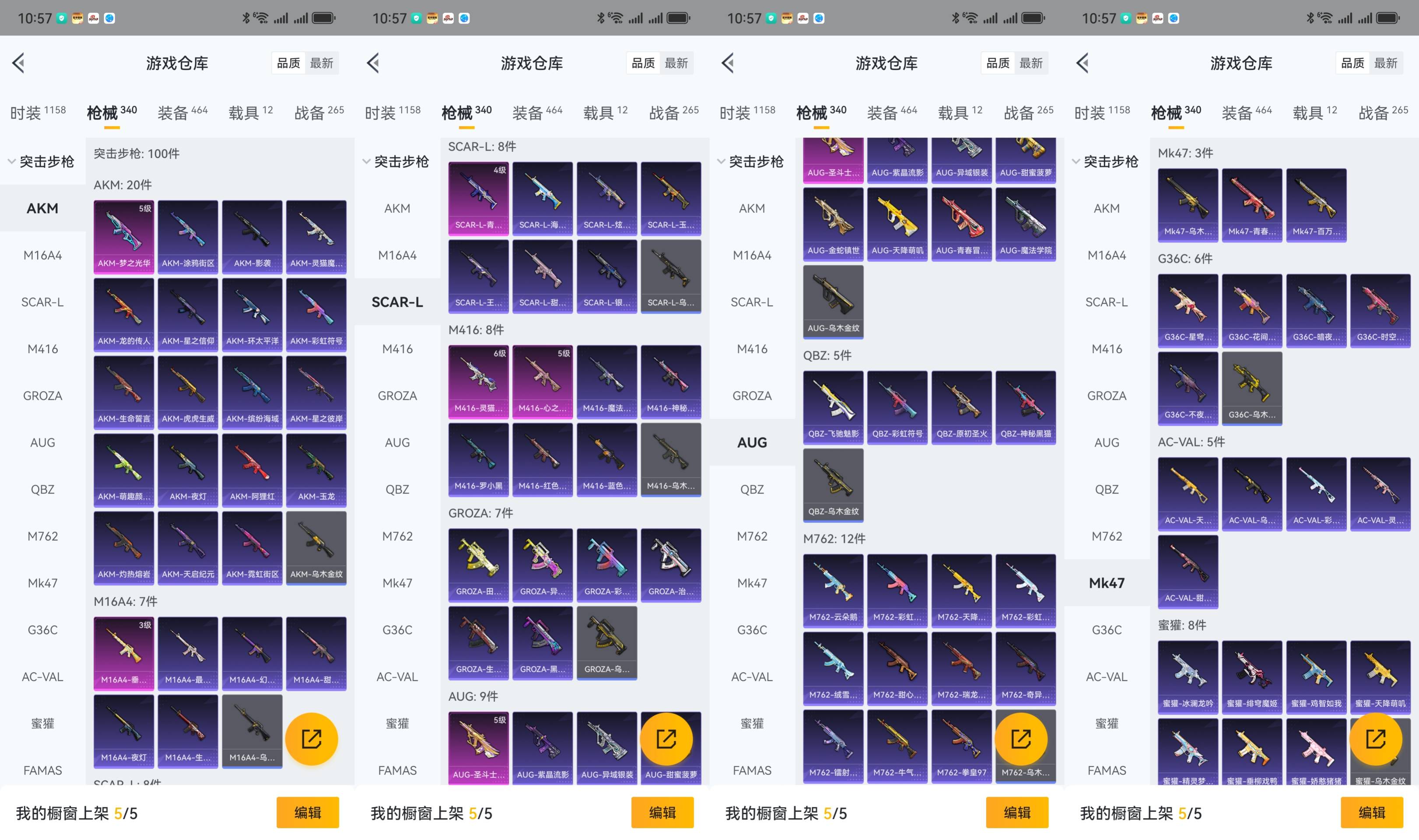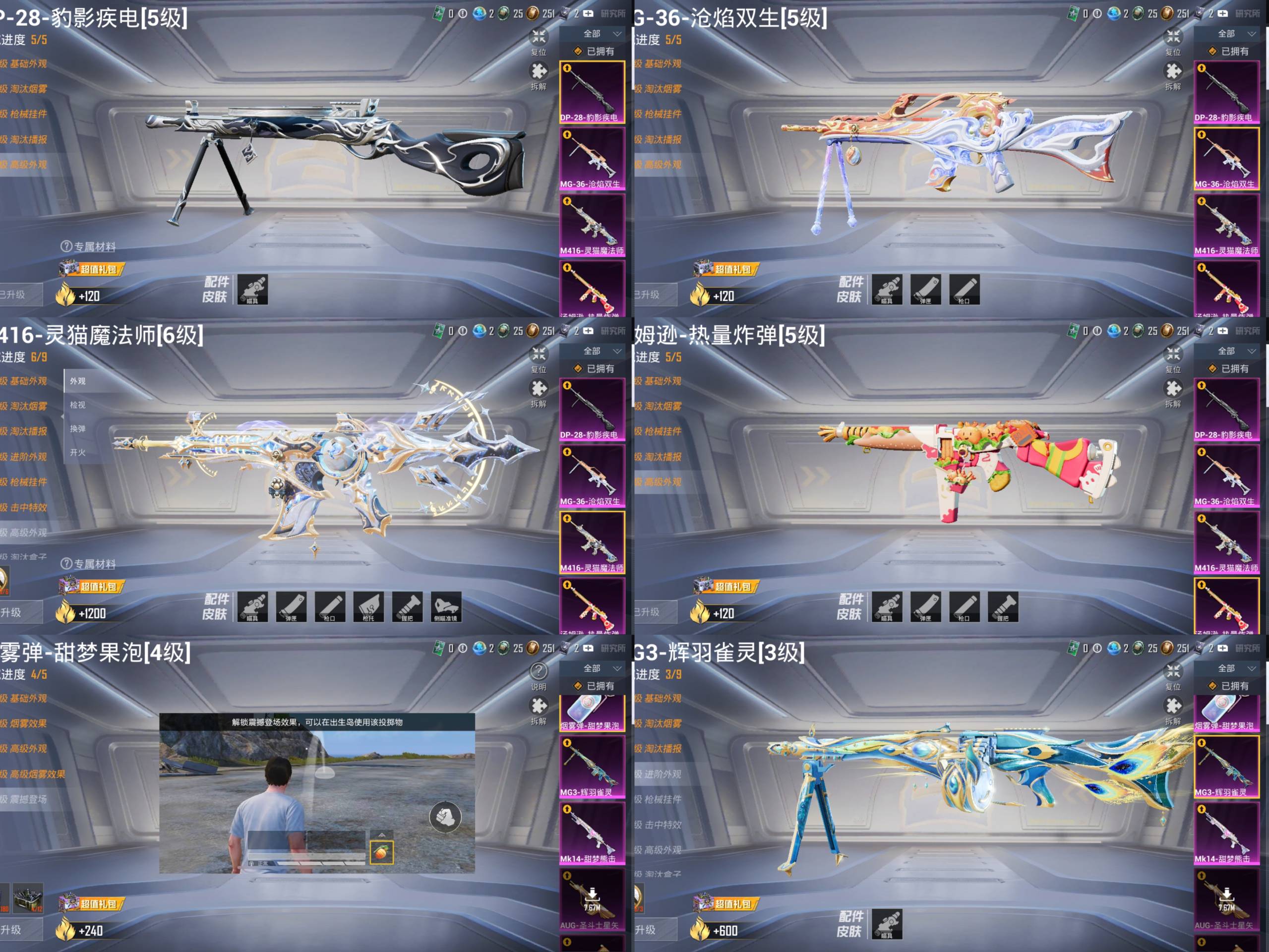 M762-瑞龙福将,M762-奇异狩猎者,AUG-魔法学院,M416-魔法学院,AKM-缤纷海域,S686-奇异狩猎者,M24-香水柠檬