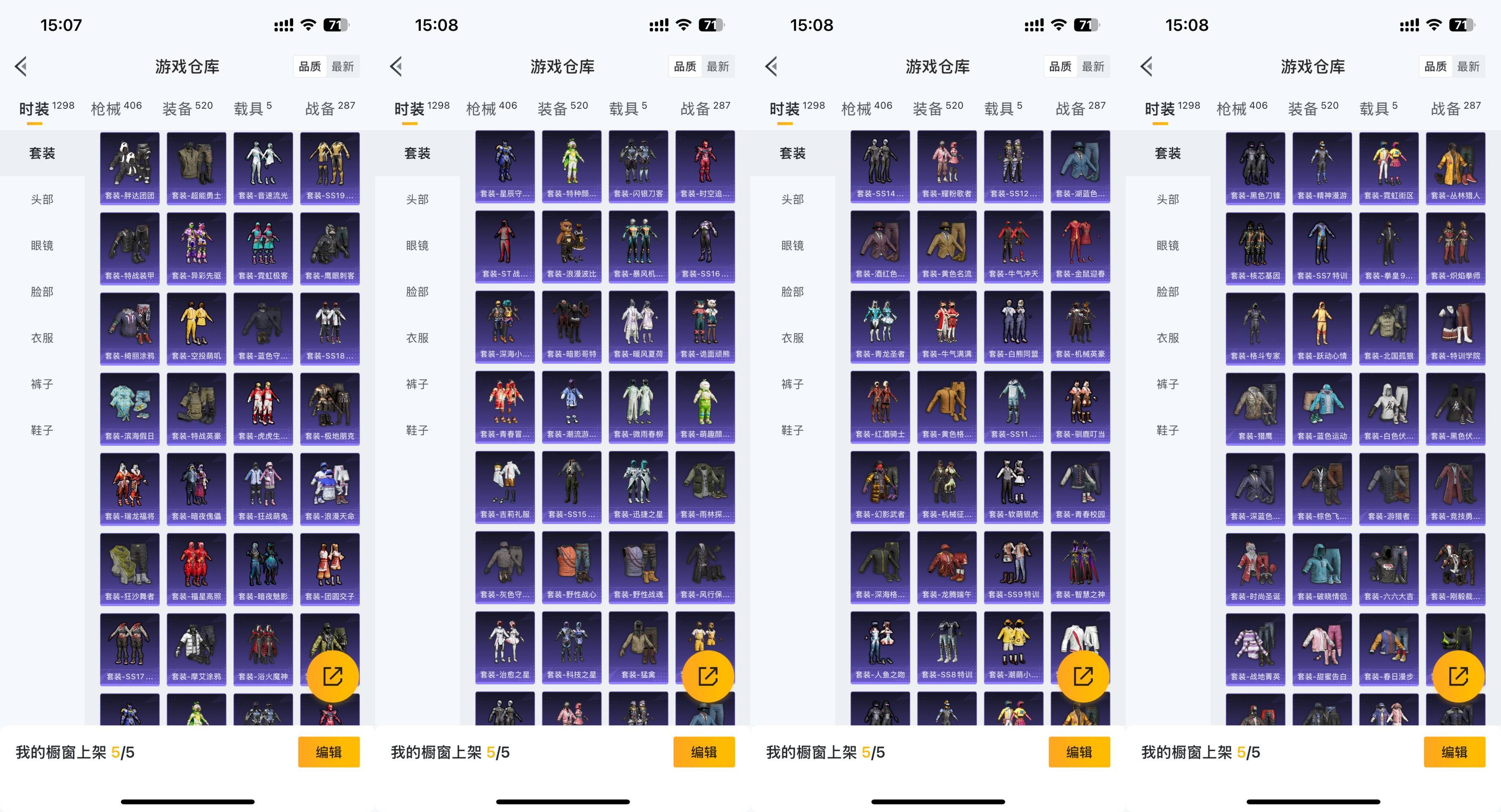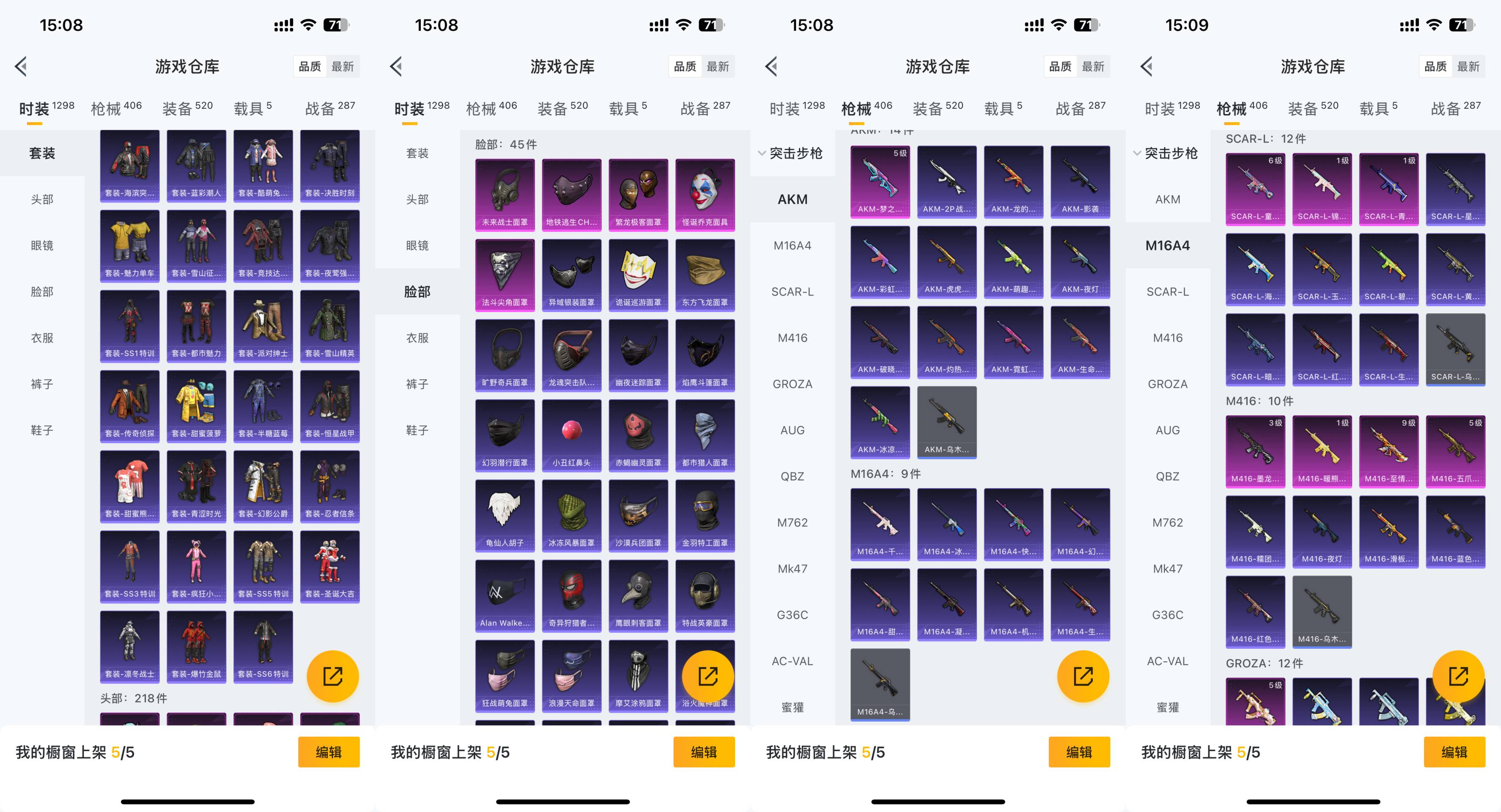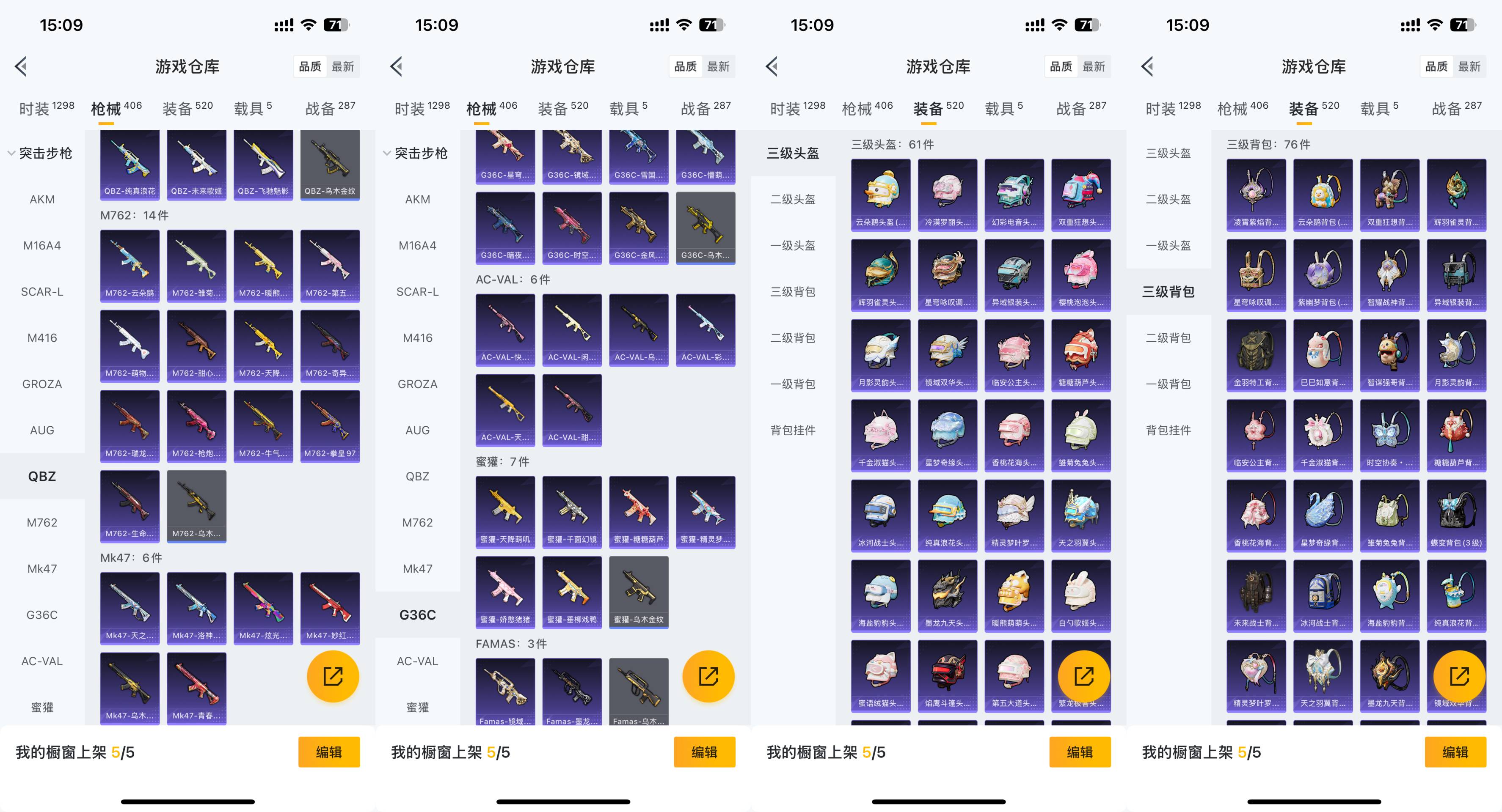 M416-五爪金龙,AKM-梦之光华,SCAR-L-童趣迷兔,UMP45-雪国精灵,GROZA-焦糖拿铁,SCAR-L-青春物语,M416-暖熊萌萌,M416-至情至圣,DP-28-圣堂之誓,P90-沙丘之主,SCAR-L-锦绣绵绵,M416-墨龙九天,破片手榴弹-粉粉猫爪,DP-28-千金淑猫,AUG-许七安,Kar98K-巳巳如意