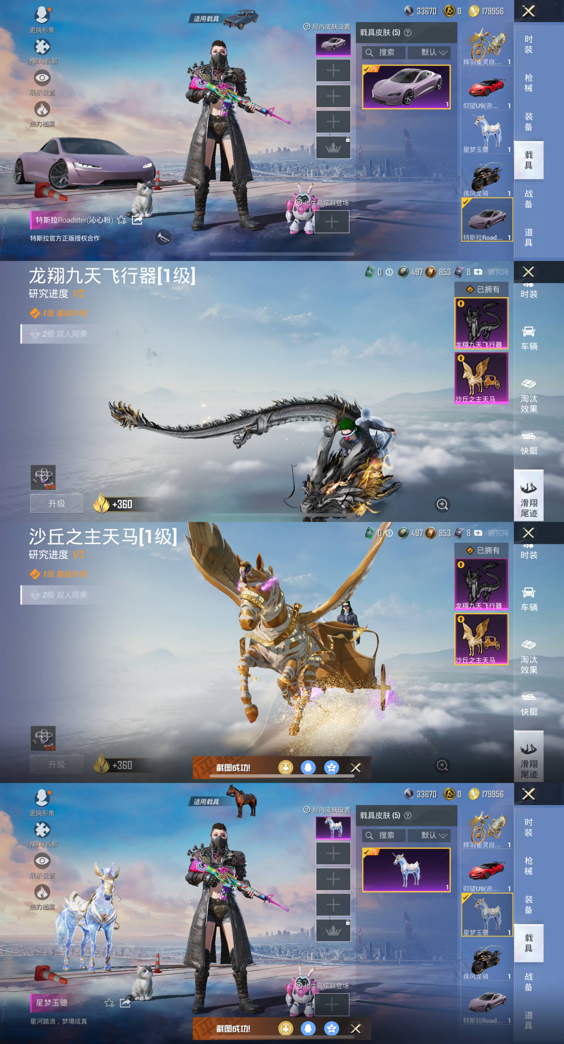 特斯拉Roadster(沁心粉),仰望U9(赤霞丹朱),疾风龙骑,星梦玉骢