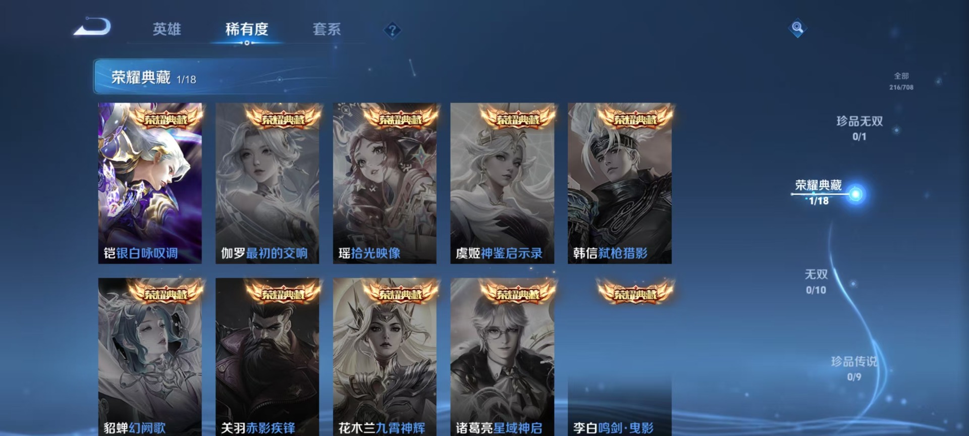 - PX_2098852-?万象图鉴·13元流主题·13按键】【剑心李白·鸣剑曳影·九霄神辉】【大耳狗瑶珍品·时雨天司·祈雪灵祝·哈迪斯】【无二次-2025.8.16出二次】ASYw12818-安卓Q-123英雄-316皮肤-240铭文-贵族积分12w【贵族9】【2典藏·1无双·1珍品·2星传说·34传说·1天幕·13按键】【因赛季更新游戏段付以上号为准!】 【荣耀典藏】:李白鸣剑曳影,花木兰九霄神辉