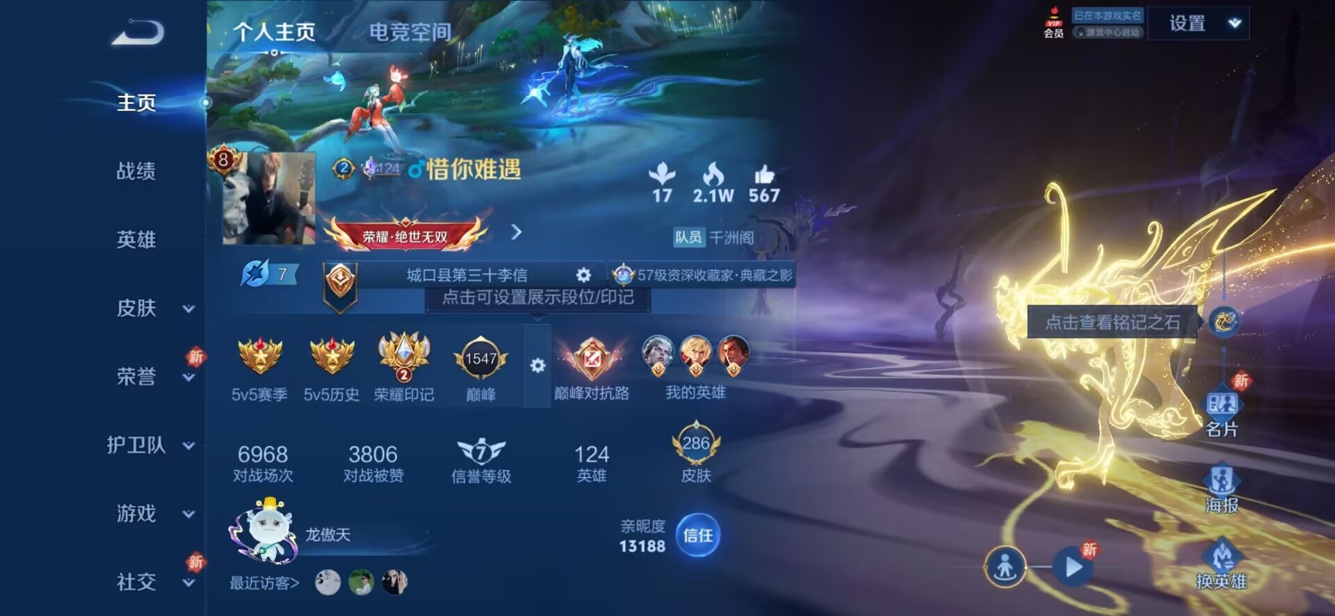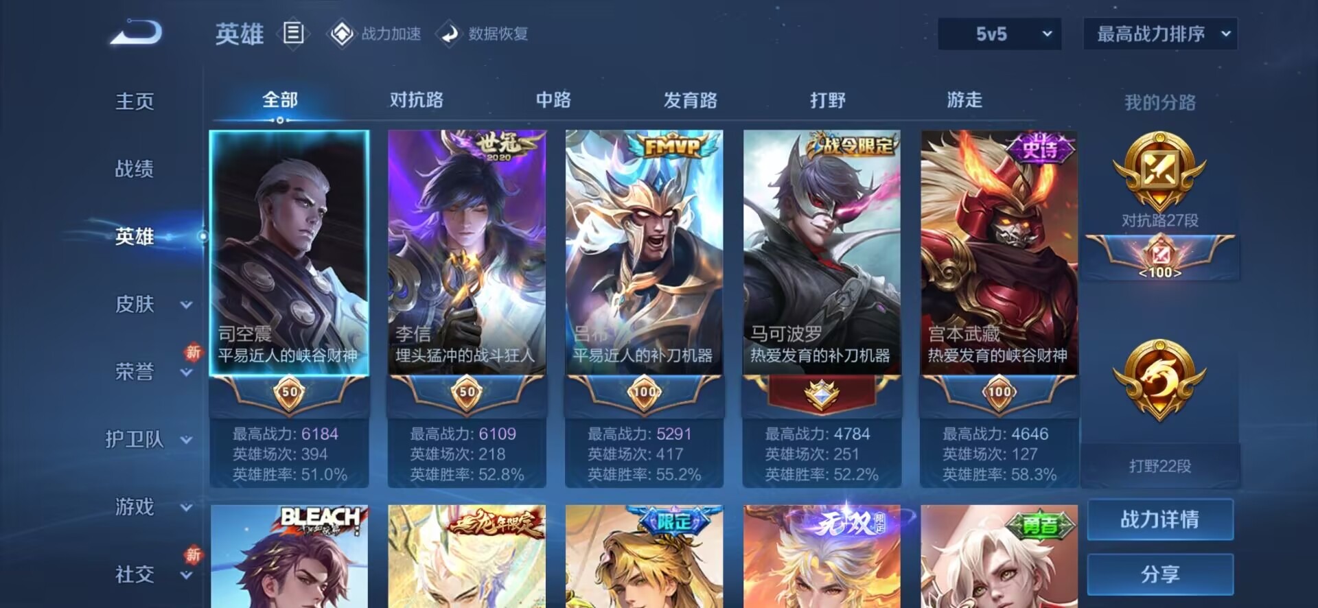 - [11972277]V5 123英雄 152皮肤 可修改实名 珍宝阁皮:优雅恋人,蔷薇恋人 限定皮:至尊宝,五谷丰年,游园惊梦,梁祝,李小龙 史诗皮:百相守梦-黄忠,特工魅影,雪夜绮愿(周瑜),猫狗日记-孙策,节奏热浪,女仆咖啡,摇滚巨星,水果甜心,星夜王子,幽灵船长,繁星吟游(呼啦呼啦),拒霜思,鹰眼统帅,未来纪元-赵云