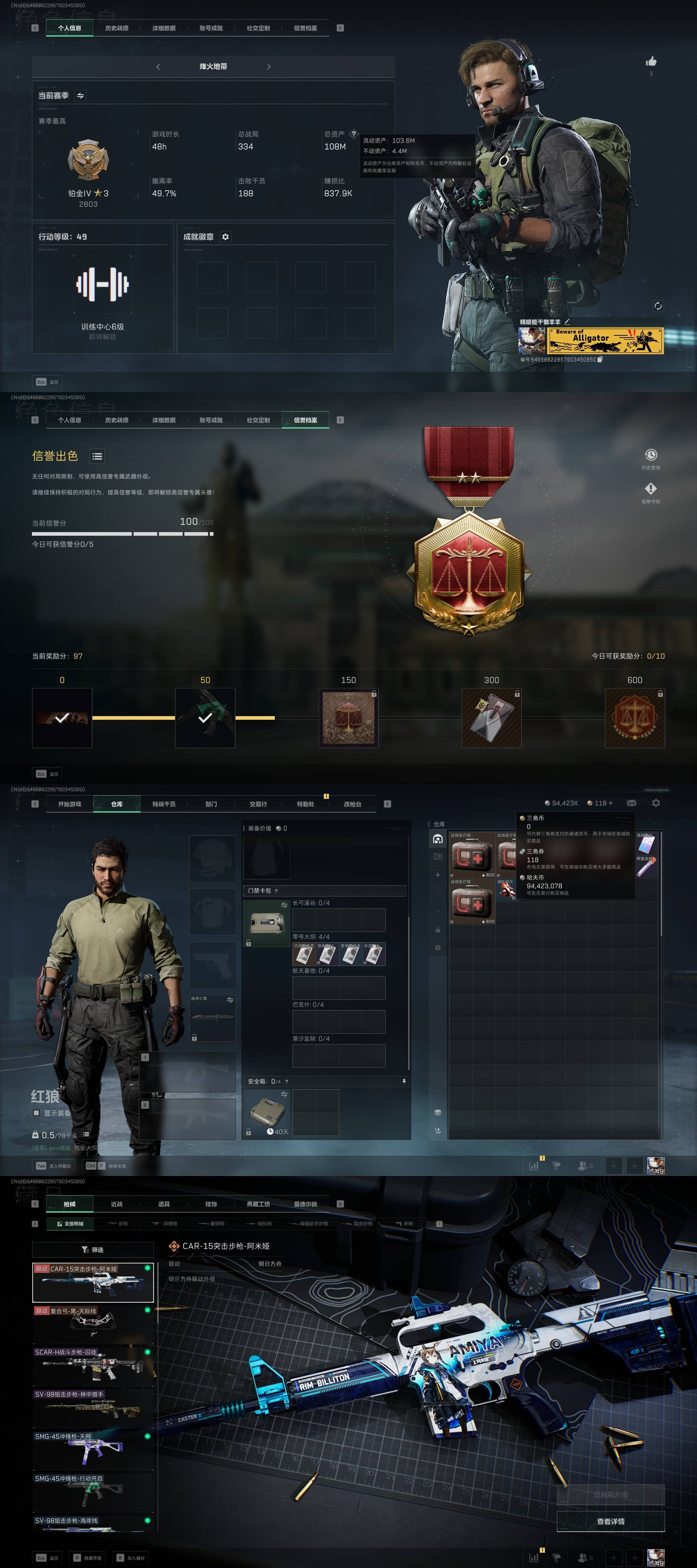 [10471182]WBDS0012 纯币号 三端互通 段位铂金 行动等级49 资产103.6m 哈弗币94423k CAR-15突击步枪-阿米娅 复合弓-黑-天际线 SCAR-H战斗步枪-囚徒 SV-98狙击步枪-林中猎手可二次 三角洲行动账号 【哈夫币物品官方控价存在上下浮动,以游戏内截图为准,介意勿拍】