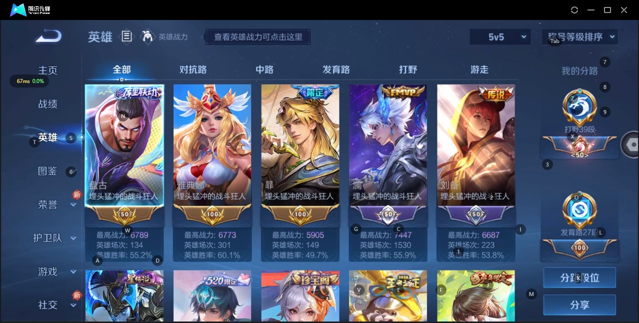 - [11254494]V6 2传说 100英雄 114皮肤 可修改实名 优质装备:绛天战甲(鸡嘴战神) 限定皮:逐霄战戟,影龙天霄 史诗皮:鸭鸭历险记-刘禅,化蝶舞,雪豹·霜爪,石田雨龙,紫霞仙子,苍穹之光,电玩小子(小书包),匿光侦查者,乱世虎臣,水果甜心,暗隐猎兽者,鬼剑武藏,心灵战警,拒霜思,水晶猎龙者,圣诞狂欢,鹰眼统帅,魅力维加斯,赏金猎手