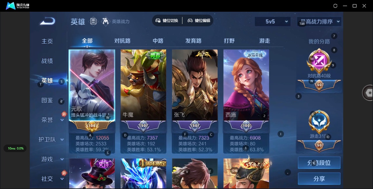 - PX_2057203-贵族等级: V8 英雄数: 124 皮肤数: 286 荣耀水晶: 全息碎影,幻阙歌 星传说: 未来机甲,金色仲夏夜 传说皮: 黄金射手座,冠军飞将,久胜战神,炽阳神光,末日机甲-孙尚香,地狱火,仲夏夜之梦,地狱之眼,超时空战士-狄仁杰,碎云,山海·苍雷引 限定皮: 遇见飞天,李小龙,游园惊梦,梁祝,引擎之心,神威,蜜橘之夏,飞衡,天狼绘梦者,白虎志,青龙志,至尊宝,武陵仙君,