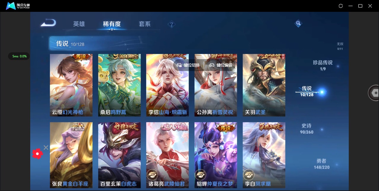 - [12296175]V7 1典藏 3传说 120英雄 178皮肤 可修改实名 优质装备:弑枪猎影(韩信典藏),云霓雀翎,零号·赤焰,淬星耀世 珍宝阁皮:妄想食味 限定皮:至尊宝,高山流水,五谷丰年,梁祝,李小龙,孙行者,大圣娶亲 史诗皮:紫霞仙子,特工魅影,永昼,冰冠公主,偶像歌手,节奏热浪,水果甜心,幽灵船长,鬼剑武藏,纤云弄巧,拒霜思,乘风破浪,逐浪之夏,水晶猎龙者,曙光守护者,金属风暴,圣诞恋歌,鹰眼统帅,魅力维加斯,赏金猎手,奇遇舞章,无心