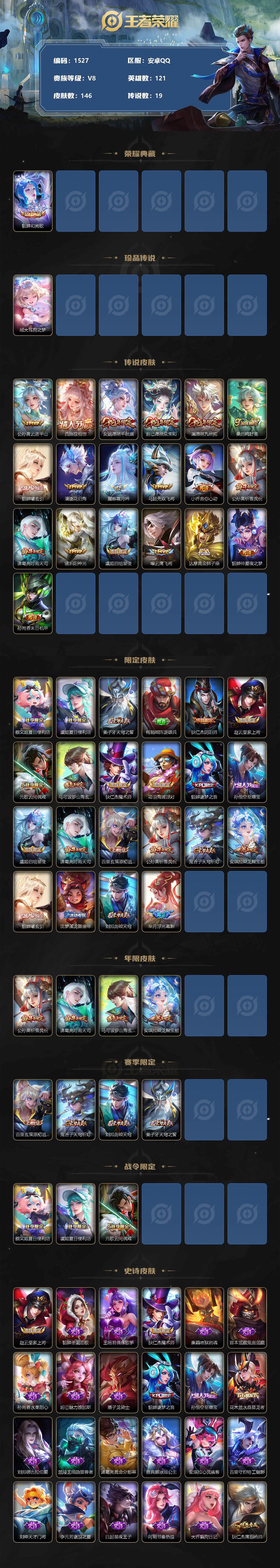 [11793034]【商品标题】:安卓Q-V8-最强王者段位-121英雄-146皮肤-1典藏-0珍品无双-0无双-1珍品传说-19传说-38史诗