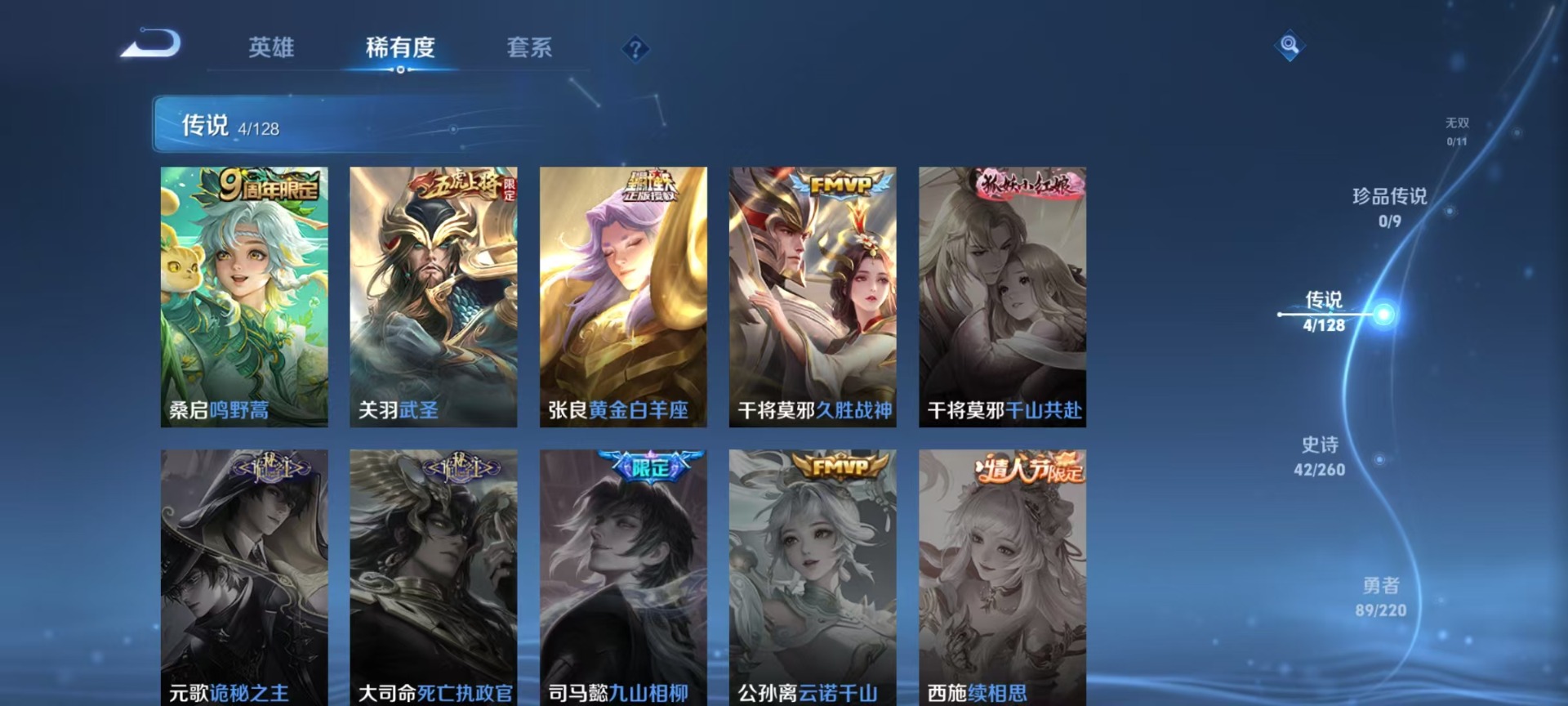 刘邦夺宝奇兵,老夫子醍醐杖,沈梦溪星空之诺,沈梦溪大漠名商,苏烈千军破阵,典韦穷奇,达摩沙漠行僧,兰陵王金庭之子,明世隐疑决卦,蒙犽狂想玩偶喵,马可波罗暗影游猎,鬼谷子原初探秘者,张良古海寻踪,桑启海盐诗旅,狄仁杰万华元夜,程咬金演武夺筹,李元芳银河之约,李元芳云中旅人,弈星混沌棋,米莱狄御霄,钟馗驱傩正仪,狂铁御狮