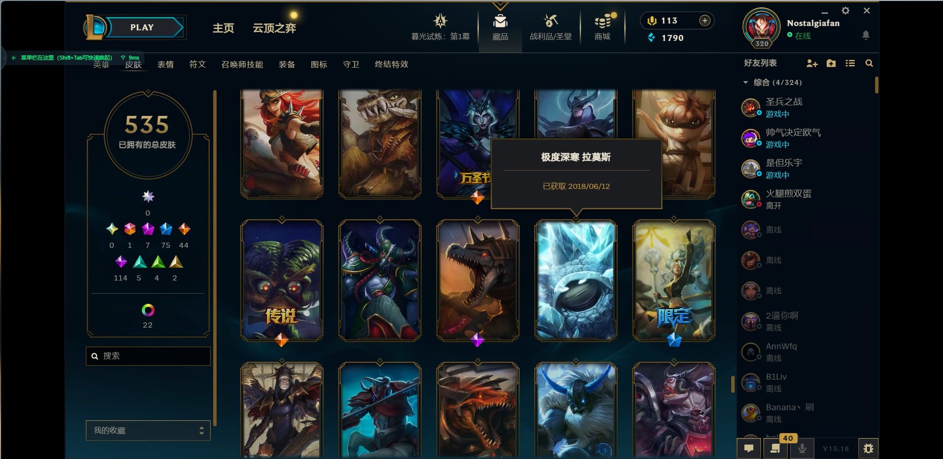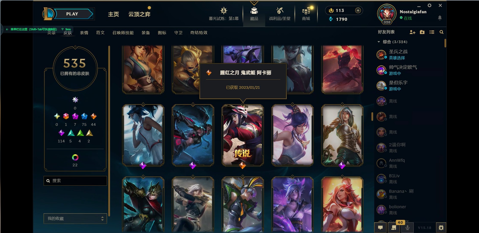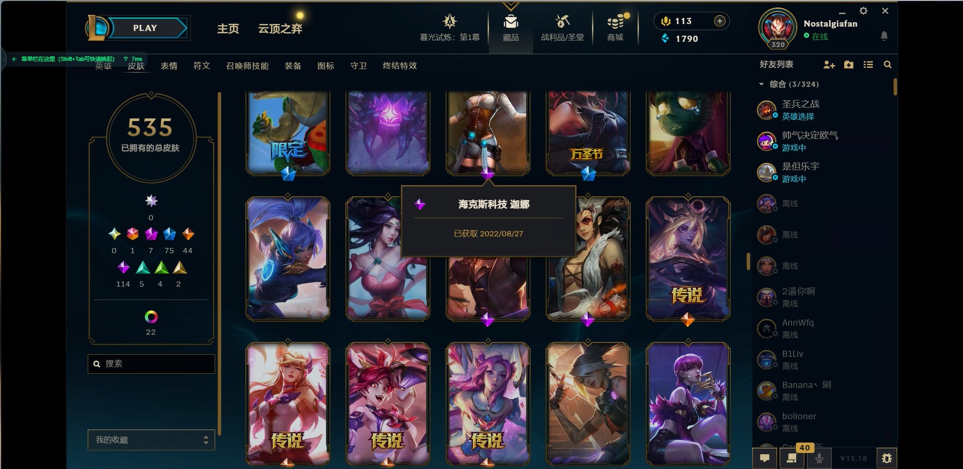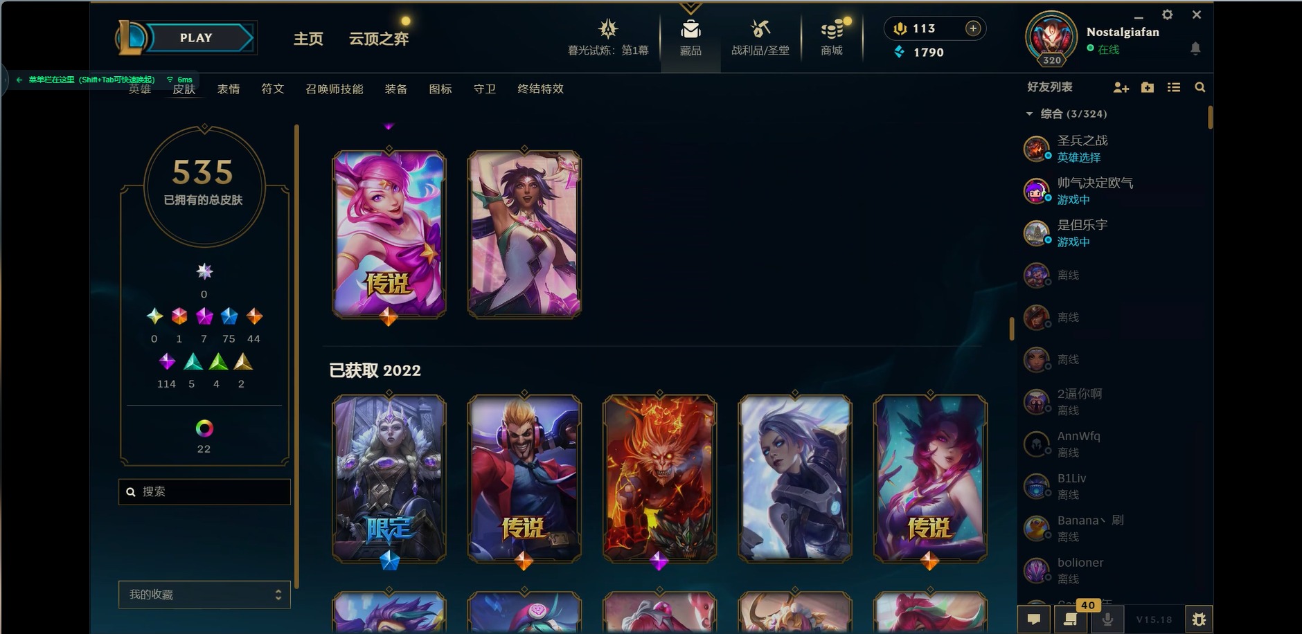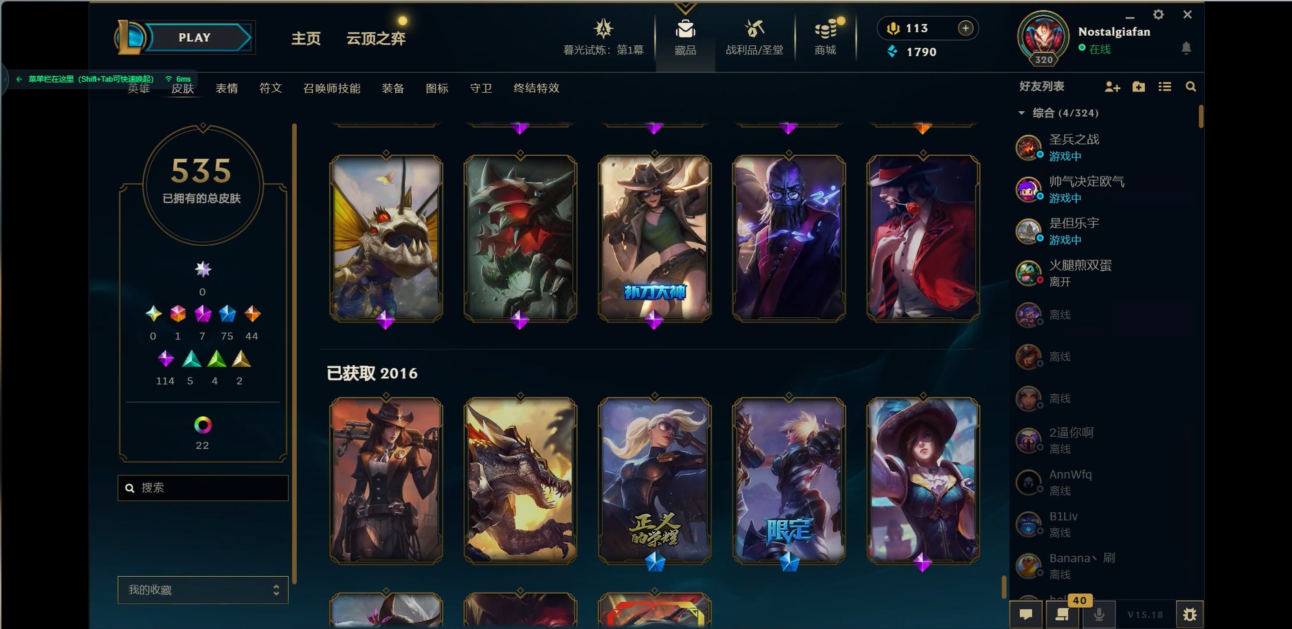 - [11730340]可二次 可修改实名 2神话 24传说 73史诗 168皮肤 128英雄 钻石 皮肤:凯南-超级英雄,凯南-超武乾坤:电弧,凯南-刺客信条,凯南-梦境绅探,凯南-奈落之炎,凯南-腥红之月,厄运小姐-电玩女神,厄运小姐-星之守护者,厄运小姐-破败军团,厄运小姐-魅惑女巫,厄运小姐-西部牛仔,阿狸-风纪委员,阿狸-电玩女神,阿狸-幻梦甜心,阿狸-K/DA ALL OUT,艾希-西部天使,艾希-神龙尊者 苍龙,艾希-女皇,艾希-极地女神,内瑟斯-创世魔神,内瑟斯-战地机甲,内瑟斯-炼狱魔犬,内瑟斯-单身贵族,烬-龙冕异士,烬-源计划:升华,烬-暗星尊,烬-灭迹行者,蔚-女警官,蔚-源计划:裁决,蔚-炼狱魔女,蔚-燎原烈焰,崔斯特-怪诞童话,崔斯特-王牌舰长,崔斯特-逍遥赌侠,德莱厄斯-热血班长,德莱厄斯-灌篮高手,德莱厄斯-神王,提莫-小蜜蜂,提莫-欧米伽小队 幽灵特工,提莫-兔宝宝,亚索-斗魂无双,亚索-黑夜使者,亚索-西部牛仔