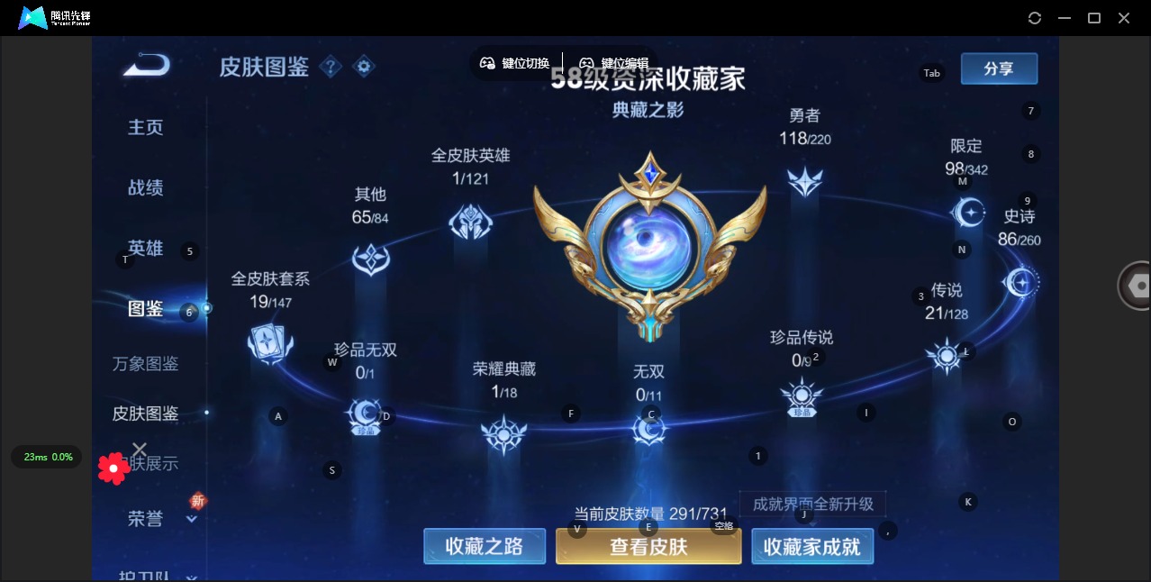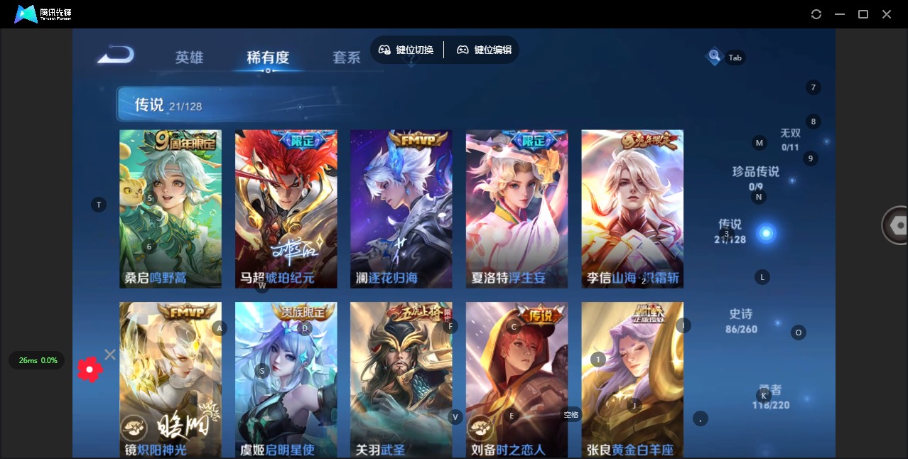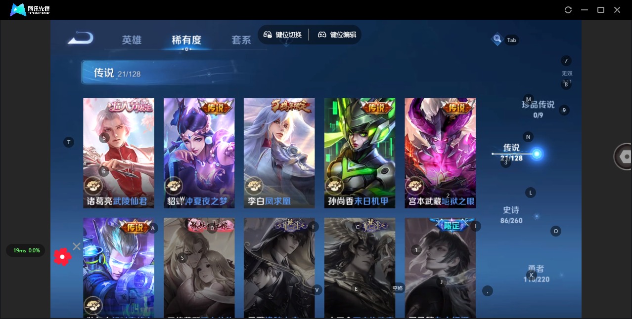 - [11602137]V8 1典藏 10传说 124英雄 284皮肤 可修改实名 优质装备:弑枪猎影(韩信典藏),黄金射手座,云鹰飞将(小将军),一念神魔,仲夏夜之梦(大飞蛾) 传说皮:幻光神枪 珍宝阁皮:妄想食味,蔷薇恋人,玩趣恶龙 限定皮:愿照·山河定(司空震年限),逐霄战戟,鸣野蒿,傲雪梅枪,飞衡(韩信年限),山海·碧波行(瑶年限),诗剑行,五谷丰年,青龙志(铠年限),梁祝,御风骁将(吕布年限),龙胆,天狼征服者,如梦令-后羿,霸王别姬-虞姬,孙行者,大圣娶亲,时之祈愿-瑶(瑶传限),百木心枪,时之奇旅-妲己 史诗皮:鸭鸭历险记-刘禅,龙之律动,石田雨龙,茶境仙,破空之剑,战舞者,蔬乡物语(鲁班七号),乘龙·忆丹青(大乔年限),遇见神鹿,电玩小子(小书包),黄金分割率,特工魅影,千年之狐,永昼,百解令(蒙犽),高渐离燃音魔法,偶像歌手,暗夜猫娘,魅语,晚萤,末日机甲-吕布,猫狗日记-孙策,猫狗日记-大乔,时之恋人-孙尚香,乱世虎臣,修罗,女仆咖啡,水果甜心,绅士熊喵,天才门将,星夜王子,心灵骇客,功夫厨神,德古拉伯爵,暗隐猎兽者,幽灵船长,鬼剑武藏,暗渊魔法,心灵战警,天秀·启明,繁星吟游(呼啦呼啦),缤纷独角兽,乘风破浪,逐浪之夏,月团寄思,水晶猎龙者,曙光守护者,金属风暴,圣诞狂欢,鹰眼统帅,暗夜贵公子,魅力维加斯,未来纪元-赵云