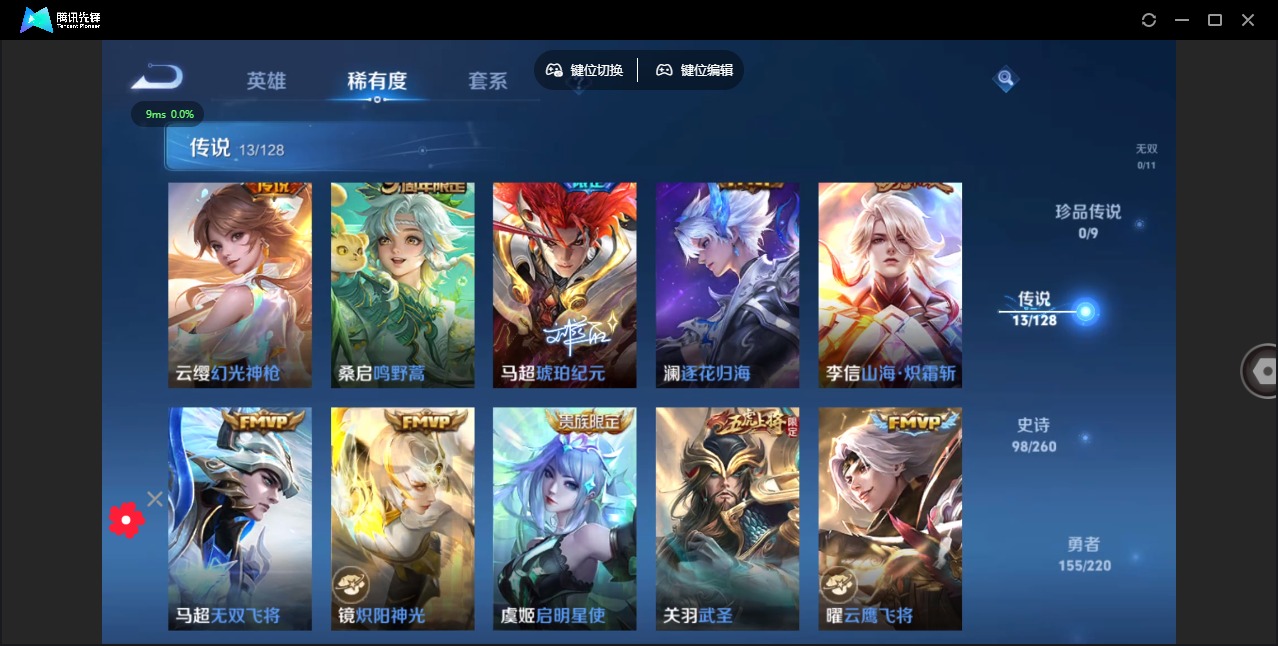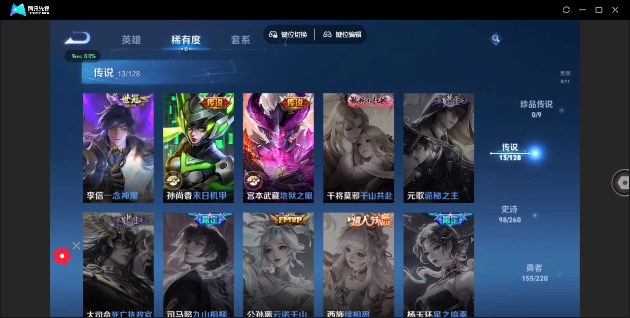- [11868100]V5 1珍品传说 1传说 123英雄 130皮肤 可修改实名 优质装备:器灵·落星盏,涂山容容 珍宝阁皮:万物之道 限定皮:鸣野蒿,山海·碧波行(瑶年限),遇见飞天,五谷丰年 史诗皮:鸭鸭历险记-刘禅,器灵·浮梦炉,龙之律动,百相守梦-周瑜,茶境仙,幻珠鲛人,百相守梦-黄忠,织梦人,守夜人,遇见神鹿,紫霞仙子,乱世虎臣,节奏热浪,女仆咖啡,水果甜心,心灵骇客,暗隐猎兽者,幽灵船长,鬼剑武藏,舞动绿茵,缤纷独角兽,乘风破浪,箭羽风息,圣诞狂欢,鹰眼统帅