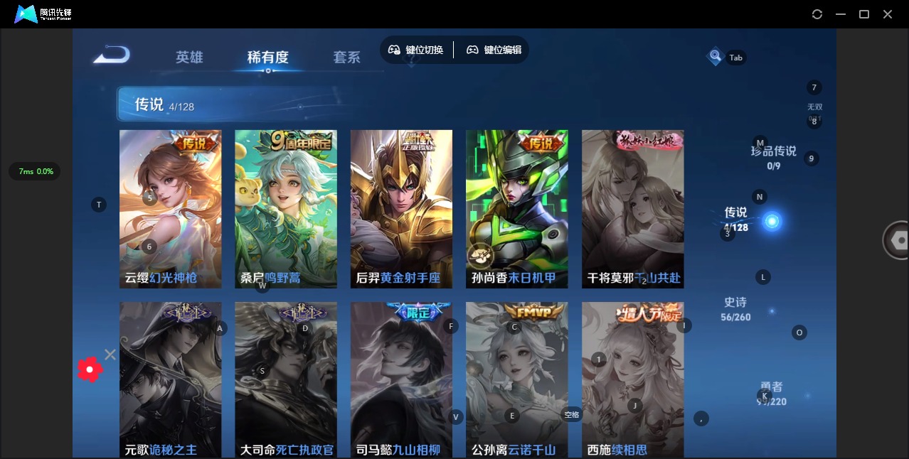 - [12003041]V7 2典藏 12传说 124英雄 237皮肤 可修改实名 优质装备:无限飓风号(高达),神鉴启示录,冠军飞将,久胜战神,云霓雀翎,无双飞将,澜逐花归海,诡秘之主,涂山容容 传说皮:典韦战鼓燎原 珍宝阁皮:蔷薇恋人,玩趣恶龙 限定皮:愿照·岁时盈(虞姬年限),愿照·山河定(司空震年限),陌上桑,鸣野蒿,至尊宝,时雨天司(水龙头),诗剑行,冰锋战神,天狼绘梦者,李小龙,如梦令-后羿,孙行者,寅虎·心曲(虎婆) 史诗皮:鸭鸭历险记-刘禅,器灵·浮梦炉,灵蛊蚀心,星界战将,谪仙醉月,龙之律动,石田雨龙,百相守梦-周瑜,茶境仙,破空之剑,百相守梦-百里守约,百相守梦-黄忠,紫霞仙子,特工魅影,千年之狐,偶像歌手,末日机甲-吕布,猫狗日记-孙策,乱世虎臣,节奏热浪,修罗,女仆咖啡,摇滚巨星,水果甜心,绅士熊喵,功夫厨神,德古拉伯爵,暗隐猎兽者,幽灵船长,鬼剑武藏,心灵战警,乐园奇幻夜,天秀·启明,舞动绿茵,地狱岩魂,缤纷独角兽,乘风破浪,逐浪之夏,水晶猎龙者,曙光守护者,箭羽风息,圣诞狂欢,圣诞恋歌,鹰眼统帅,暗夜贵公子,黎明之约,无心,未来纪元-赵云