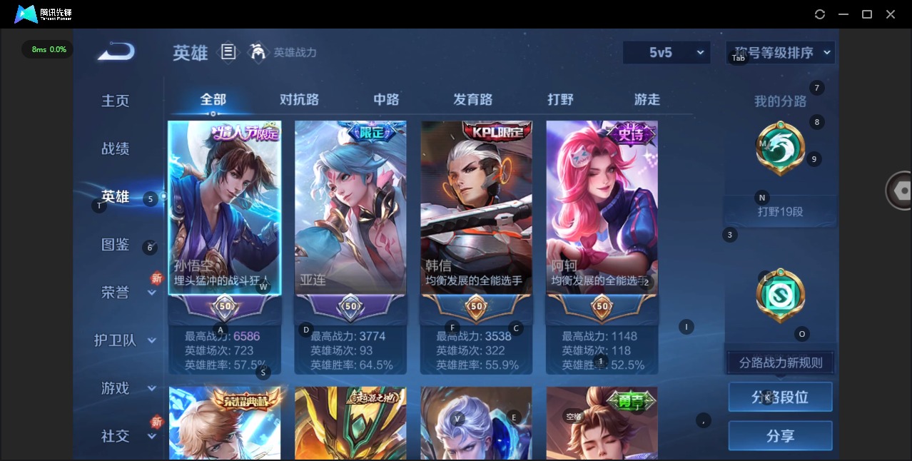 - [12264918]V8 1典藏 7传说 122英雄 181皮肤 可修改实名 优质装备:全息碎影(猴子典藏),末日机甲-孙尚香(绿蚂蚱),地狱火,零号·赤焰,超时空战士-狄仁杰 限定皮:鸣野蒿,至尊宝,瑞麟志(木兰年限),逐梦之星,李小龙,朱雀志(守约年限),永曜之星,引擎之心 史诗皮:破空之剑,苍穹之光,白龙吟,黄金分割率,特工魅影,千年之狐,冰冠公主,末日机甲-吕布,猫狗日记-孙策,乱世虎臣,节奏热浪,修罗,水果甜心,星夜王子,心灵骇客,德古拉伯爵,幽灵船长,鬼剑武藏,地狱岩魂,缤纷独角兽,乘风破浪,逐浪之夏,水晶猎龙者,曙光守护者,金属风暴,原初追逐者,鹰眼统帅,未来纪元-赵云