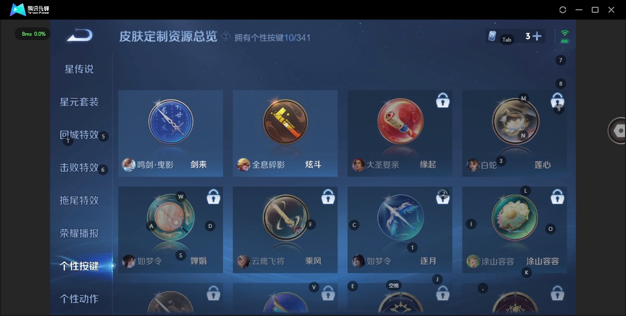 伽罗天狼溯光者,干将莫邪冰霜恋舞曲,镜匿光追影者,公孙离蜜橘之夏,裴擒虎李小龙,花木兰默契交锋,马可波罗山海·玄木吟,艾琳陌上桑,桑启鸣野蒿,猪八戒猪悟能,孙悟空孙行者,孙悟空至尊宝,赵云引擎之心,韩信傲雪梅枪,韩信逐梦之影,澜愿照·九州拓