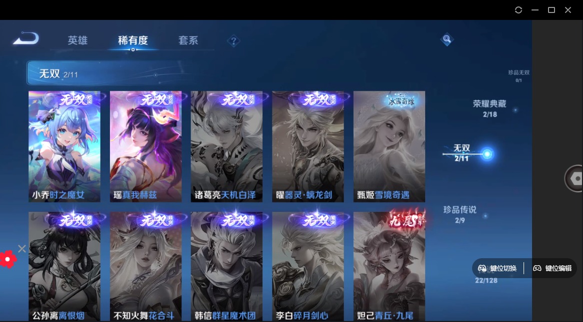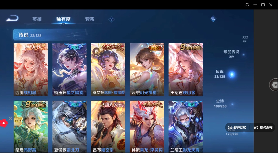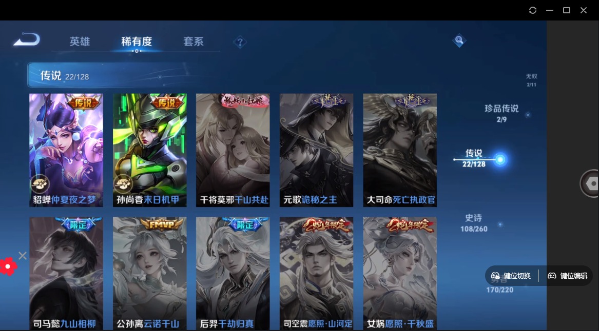 - [11677209]V8 1典藏 1珍品传说 14传说 125英雄 276皮肤 可修改实名 女号 优质装备:天鹅之梦(小乔典藏),怪盗基德,绛天战甲(鸡嘴战神),猫影幻舞,一念神魔,云霓雀翎,地狱火,仲夏夜之梦(大飞蛾),零号·赤焰 传说皮:典韦战鼓燎原 珍宝阁皮:妄想食味,优雅恋人,蔷薇恋人 限定皮:鸣野蒿,至尊宝,白虎志(电光耗子),白晶晶,时雨天司(水龙头),五谷丰年,武圣,天狼运算者,梁祝,御风骁将(吕布年限),天狼狩猎者,奔雷神使(牛魔年限),祈雪灵祝(雪兔子),李小龙,大圣娶亲 史诗皮:星界战将,怒海争锋,蒙犽顽岩魄,琥珀纪元伽罗,百相守梦-百里守约,紫霞仙子,电玩小子(小书包),黄金分割率,特工魅影,千年之狐,江河有灵,高渐离燃音魔法,蒙恬荣光圣徽,冰冠公主,偶像歌手,末日机甲-吕布,猫狗日记-孙策,时之恋人-孙尚香,乱世虎臣,节奏热浪,修罗,女仆咖啡,摇滚巨星,水果甜心,天才门将,星夜王子,心灵骇客,功夫厨神,德古拉伯爵,暗隐猎兽者,幽灵船长,鬼剑武藏,心灵战警,纤云弄巧,繁星吟游(呼啦呼啦),拒霜思,乘风破浪,逐浪之夏,月团寄思,水晶猎龙者,金属风暴,原初追逐者,圣诞狂欢,圣诞恋歌,鹰眼统帅,暗夜贵公子,魅力维加斯