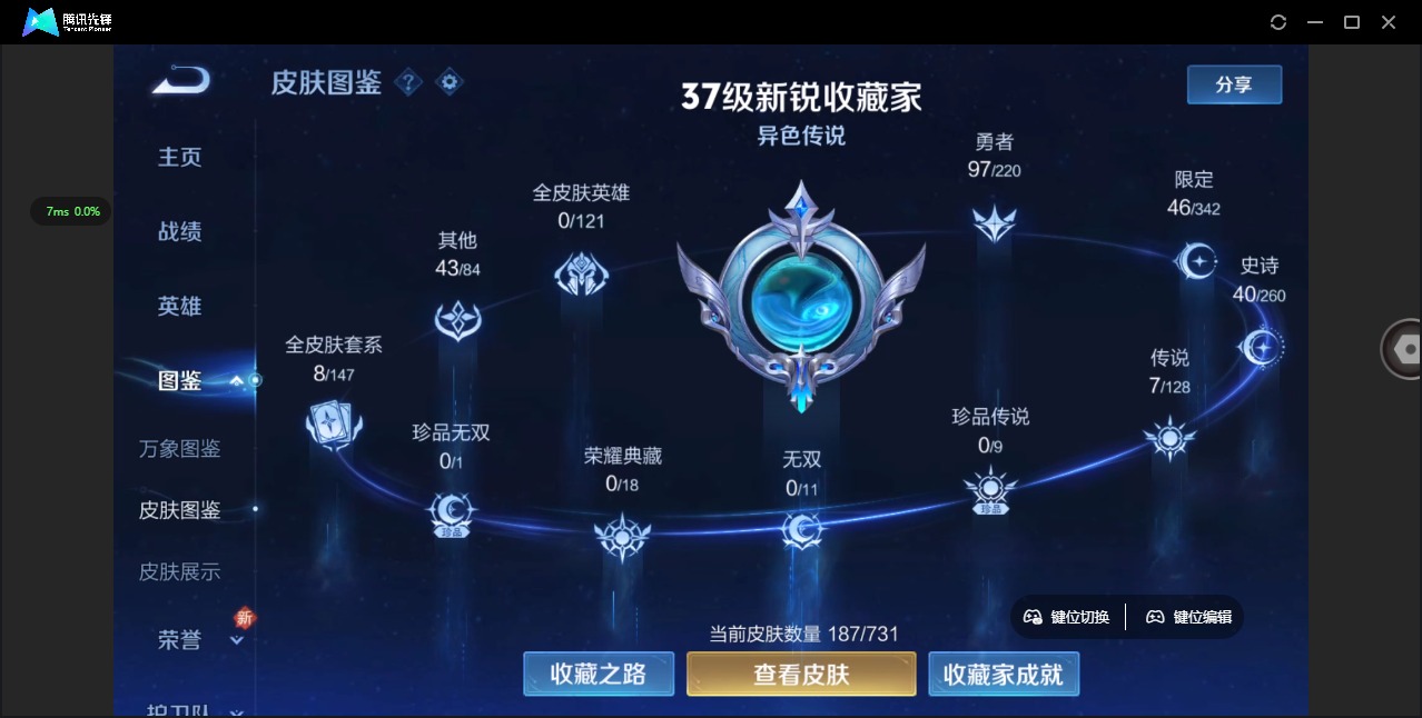 - [12032295]V7 7传说 124英雄 157皮肤 可修改实名 优质装备:地狱之眼,霜月吟,诡秘之主,涂山容容 传说皮:祥瑞亨通 珍宝阁皮:蔷薇恋人 限定皮:鸣野蒿,至尊宝,凤求凰(白切鸡),高山流水,五谷丰年,游园惊梦,梁祝,启示之音 史诗皮:赞萌露比,星界战将,龙之律动,百相守梦-周瑜,东方月初,琥珀纪元伽罗,百相守梦-黄忠,千年之狐,江河有灵,魅语,蒙恬荣光圣徽,匿光破解者,冰冠公主,电玩·爆裂旋风,龙骑士(小龙虾),乱世虎臣,节奏热浪,女仆咖啡,水果甜心,绅士熊喵,天才门将,心灵骇客,幽灵船长,鬼剑武藏,舞动绿茵,月团寄思,水晶猎龙者,曙光守护者,金属风暴,原初追逐者,圣诞狂欢,圣诞恋歌,鹰眼统帅,魅力维加斯