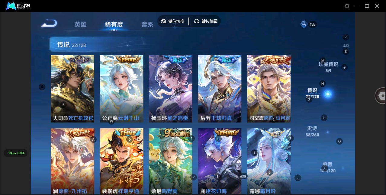 - PX_2110002-Q/至尊星耀/283皮肤/125英雄/1典藏/0珍品无双/0无双/1珍品传说/18传说/80史诗/9稀有英雄 【1 珍品传说】黑崎一护 宫本武藏, 【1 典藏皮肤】杀手不太冷 孙尚香, 【18 传说皮肤】启明星使 虞姬,云鹰飞将 曜,凤求凰 李白,猫影幻舞 貂蝉,祈雪灵祝 公孙离,默契交锋 兰陵王,音你心动 周瑜,时之恋人 刘备,黄金狮子座 达摩,乘龙·淬吴钩 孙策,一念神魔
