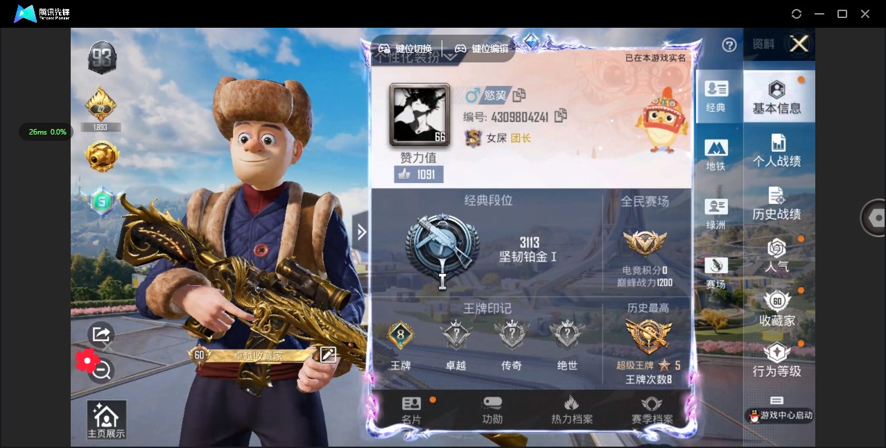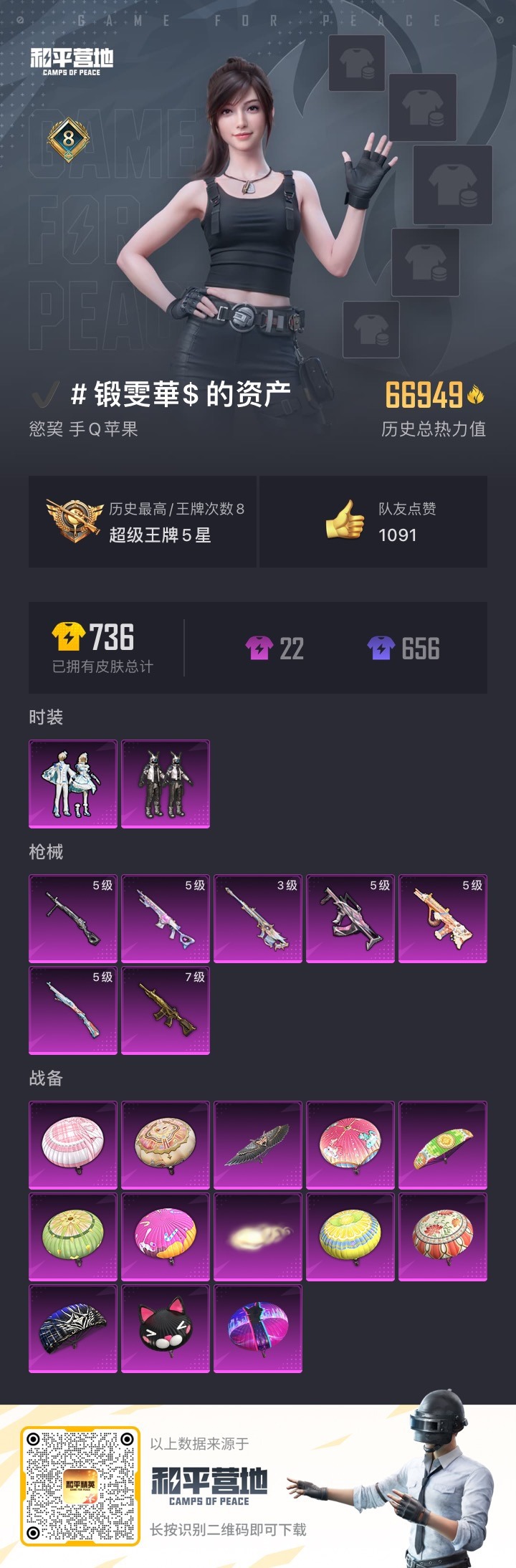 - PX_2078018-时装数: 47 枪械数: 57 战备数: 37 稀有枪皮: Kar98K-巳巳如意