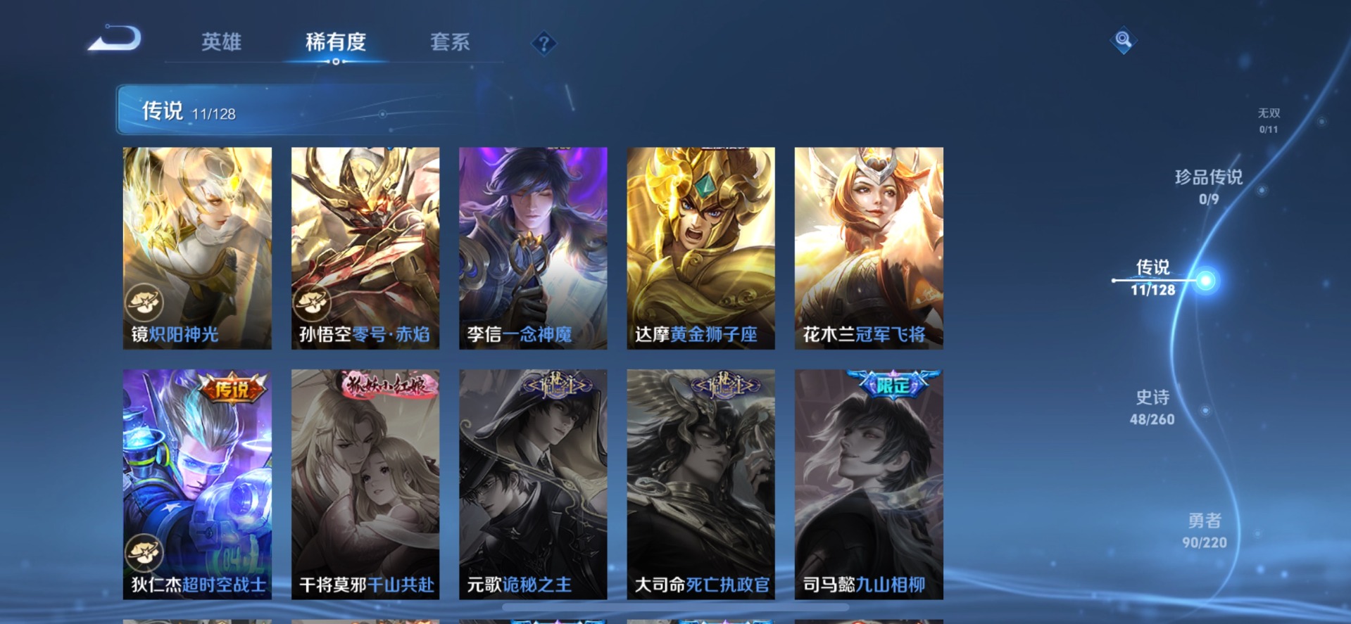 老夫子醍醐杖,沈梦溪大漠名商,曹操烛龙,苏烈千军破阵,典韦穷奇,达摩沙漠行僧,牛魔御旌,兰陵王金庭之子,鲁班大师探海日志,明世隐疑决卦,马可波罗暗影游猎,白起狰,鬼谷子原初探秘者,张良古海寻踪,桑启海盐诗旅,狄仁杰万华元夜,芈月重明,程咬金演武夺筹,扁鹊炼金王,李元芳云中旅人,弈星混沌棋,虞姬凯尔特女王,钟馗驱傩正仪,狂铁御狮,太乙真人饕餮
